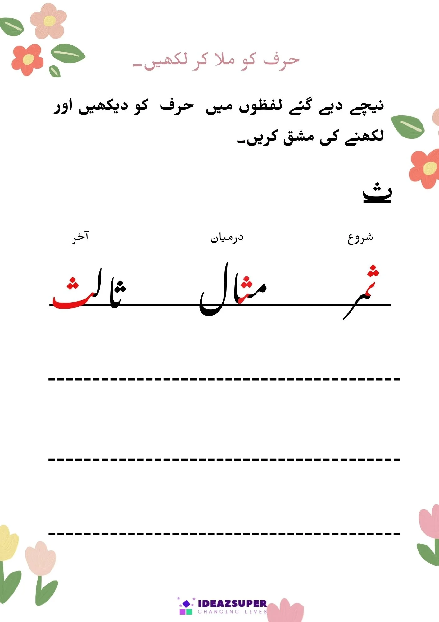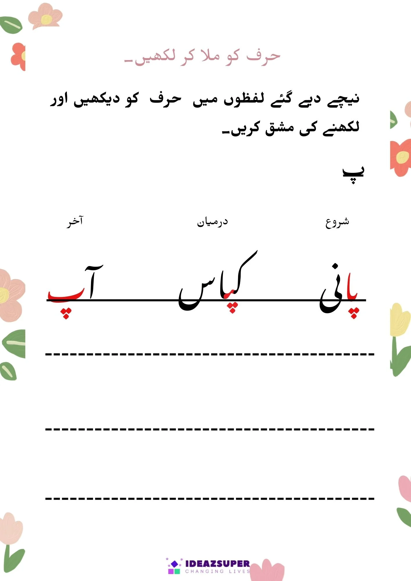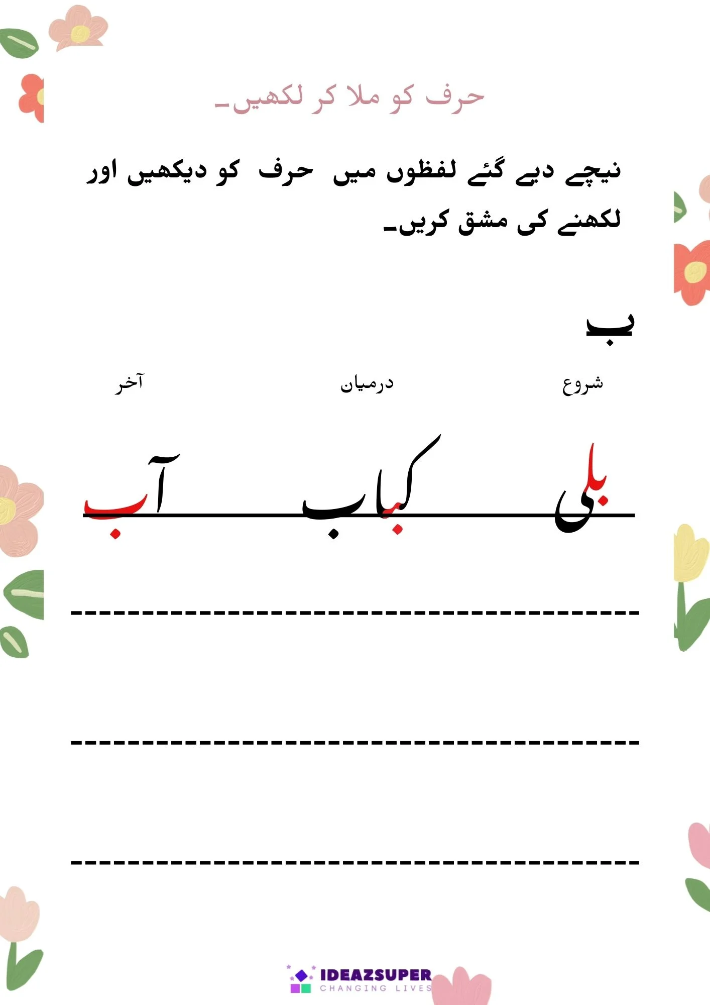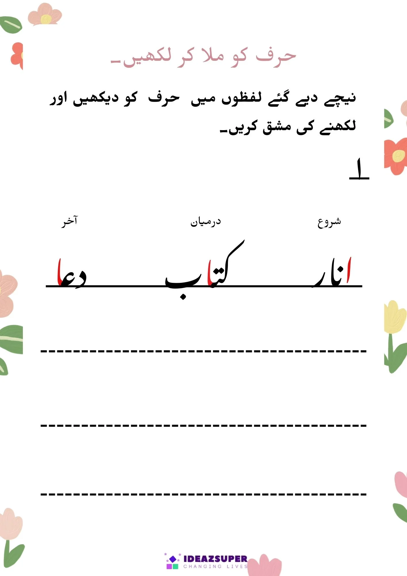 یہ ورک شیٹس بچوں کو اردو الفاظ میں شروع، درمیان اور آخر کے حروف کی آسان اور دلچسپ انداز میں پہچان سکھاتی ہیں۔ یہ سرگرمیاں پری اسکول اور کنڈرگارٹن بچوں کی اردو ریڈنگ، فونکس اور لفظ سازی کی صلاحیت کو بہتر بناتی ہیں۔