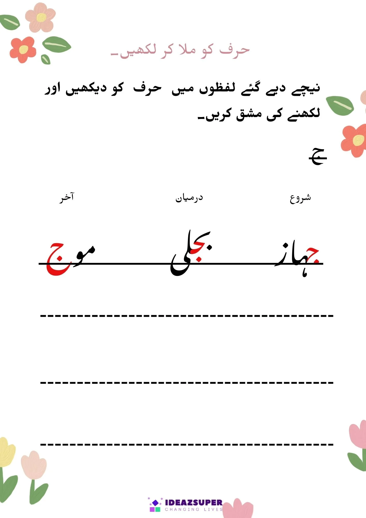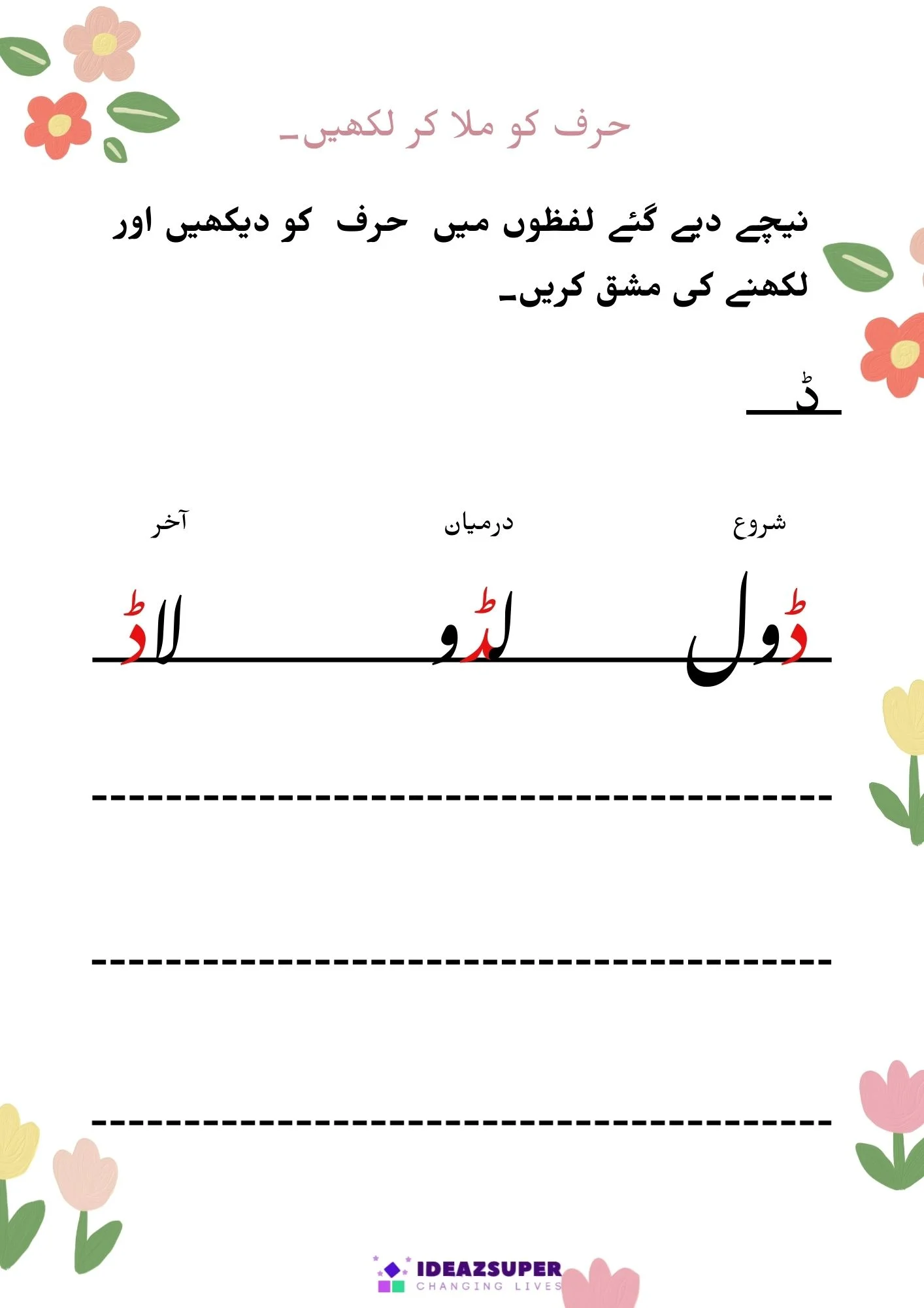 شروع، درمیان اور آخر حروف کی پہچان(ج تا ڈ)