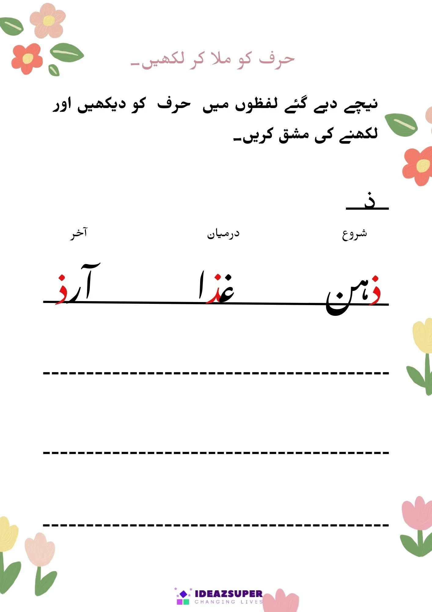 شروع، درمیان اور آخر حروف کی پہچان(ذ تا س)