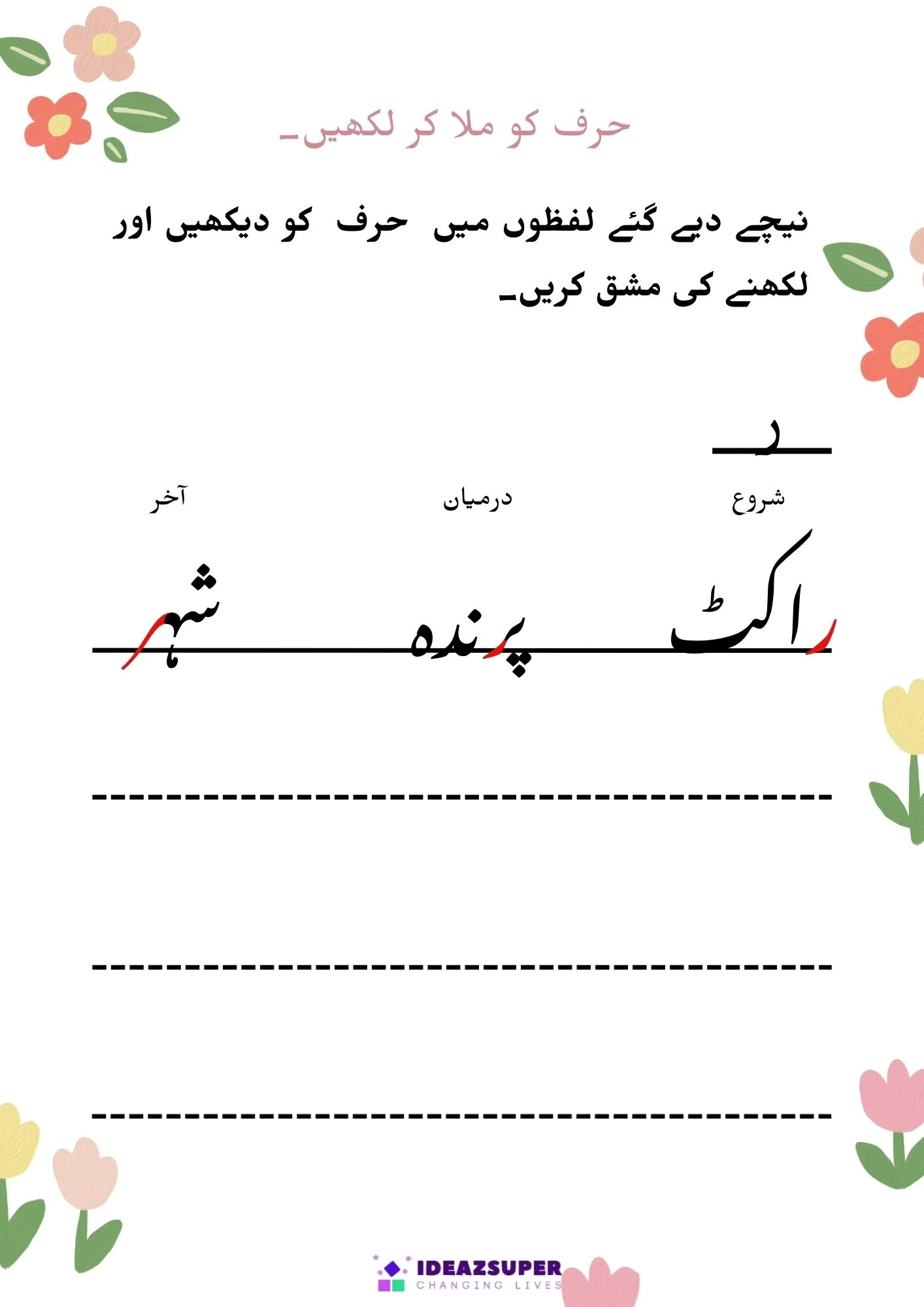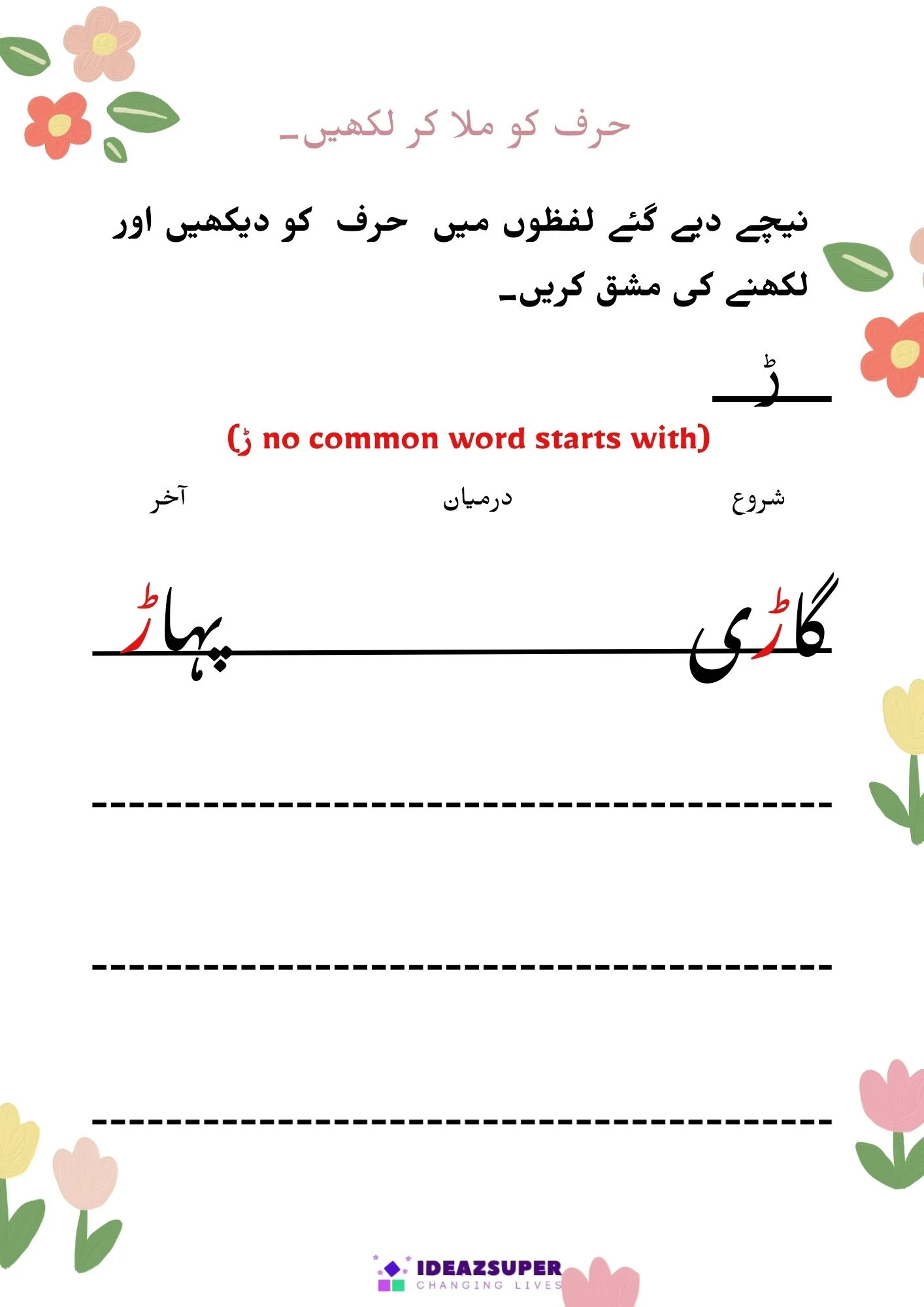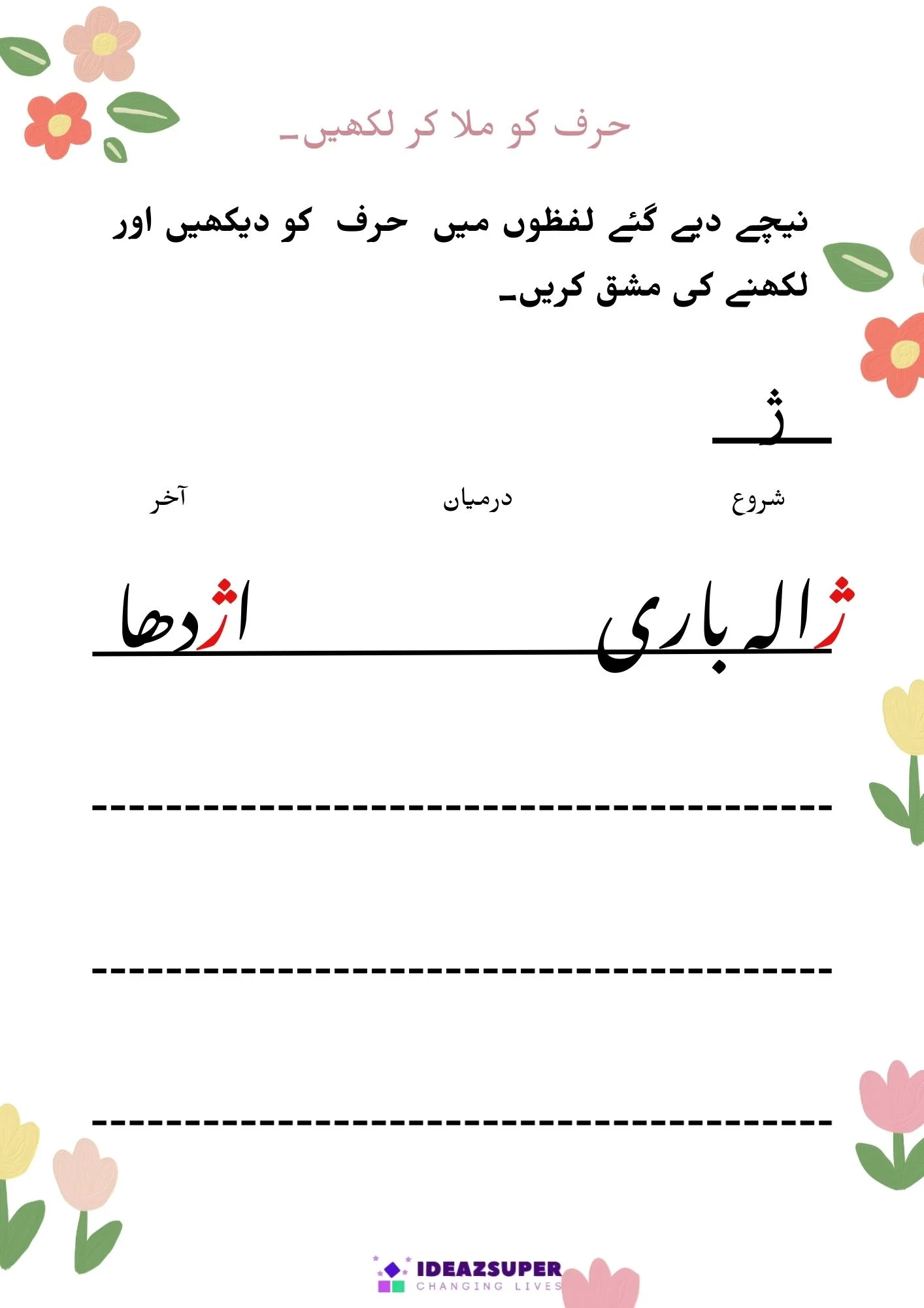 یہ ورک شیٹس بچوں کو اردو الفاظ میں شروع، درمیان اور آخر کے حروف کی آسان اور دلچسپ انداز میں پہچان سکھاتی ہیں۔ یہ سرگرمیاں پری اسکول اور کنڈرگارٹن بچوں کی اردو ریڈنگ، فونکس اور لفظ سازی کی صلاحیت کو بہتر بناتی ہیں۔