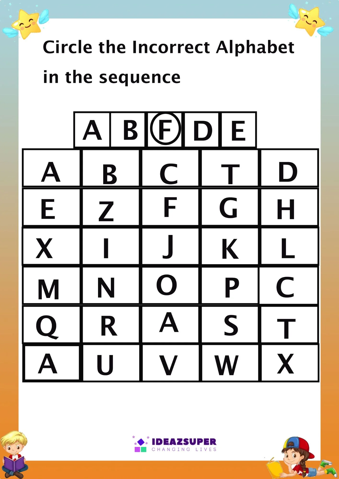 - Alphabet Sequence identification (phonics)