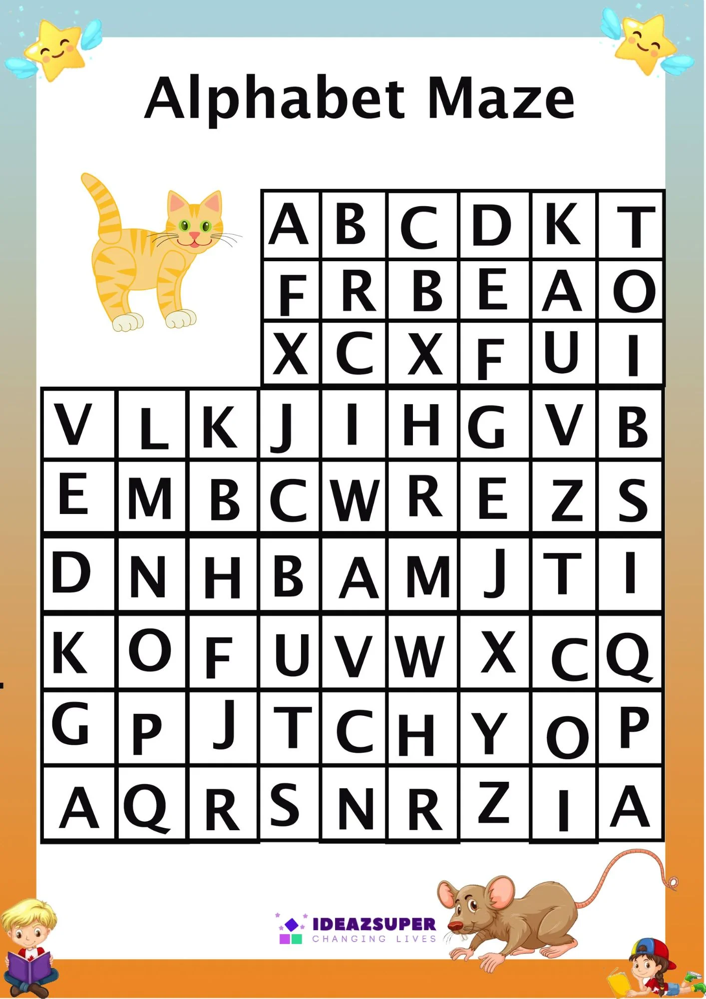 Turn alphabet learning into an adventure with our Capital Letters Alphabet Sequence Mazes! Designed for ages 2–5, these worksheets help children connect capital letters (A–Z) with their Alphabet Sequences through playful maze activities.
