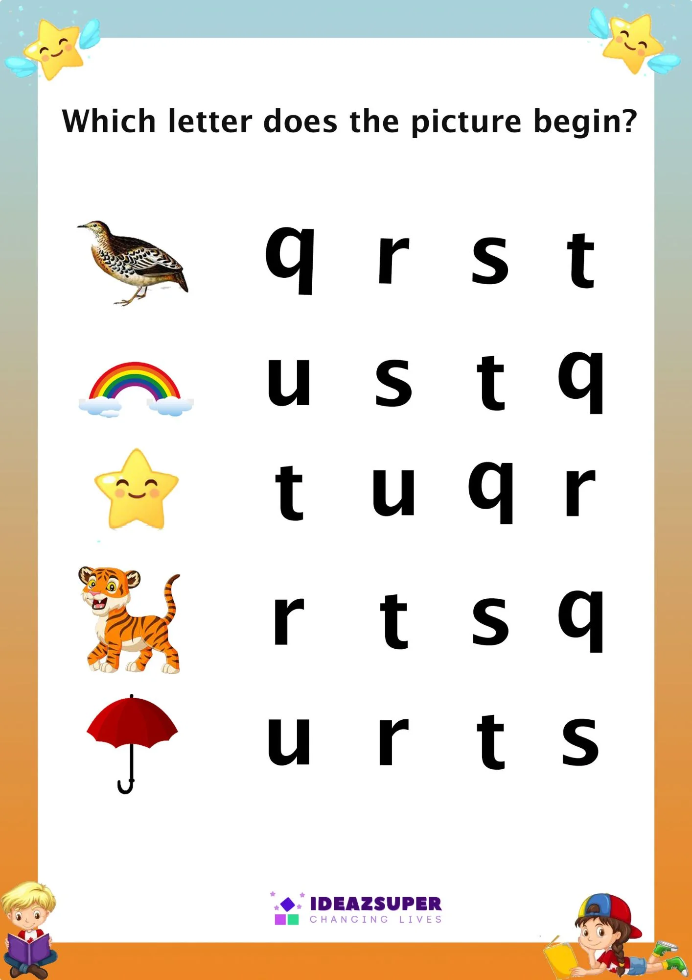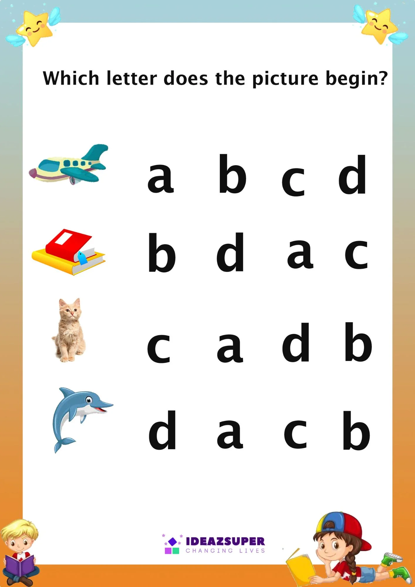 Build strong phonics skills with our Circle a Letter Worksheets! Designed for children aged 2–5, these fun activities help them identify the beginning sounds of pictures and connect them with the corresponding lowercase letters (a–z).
