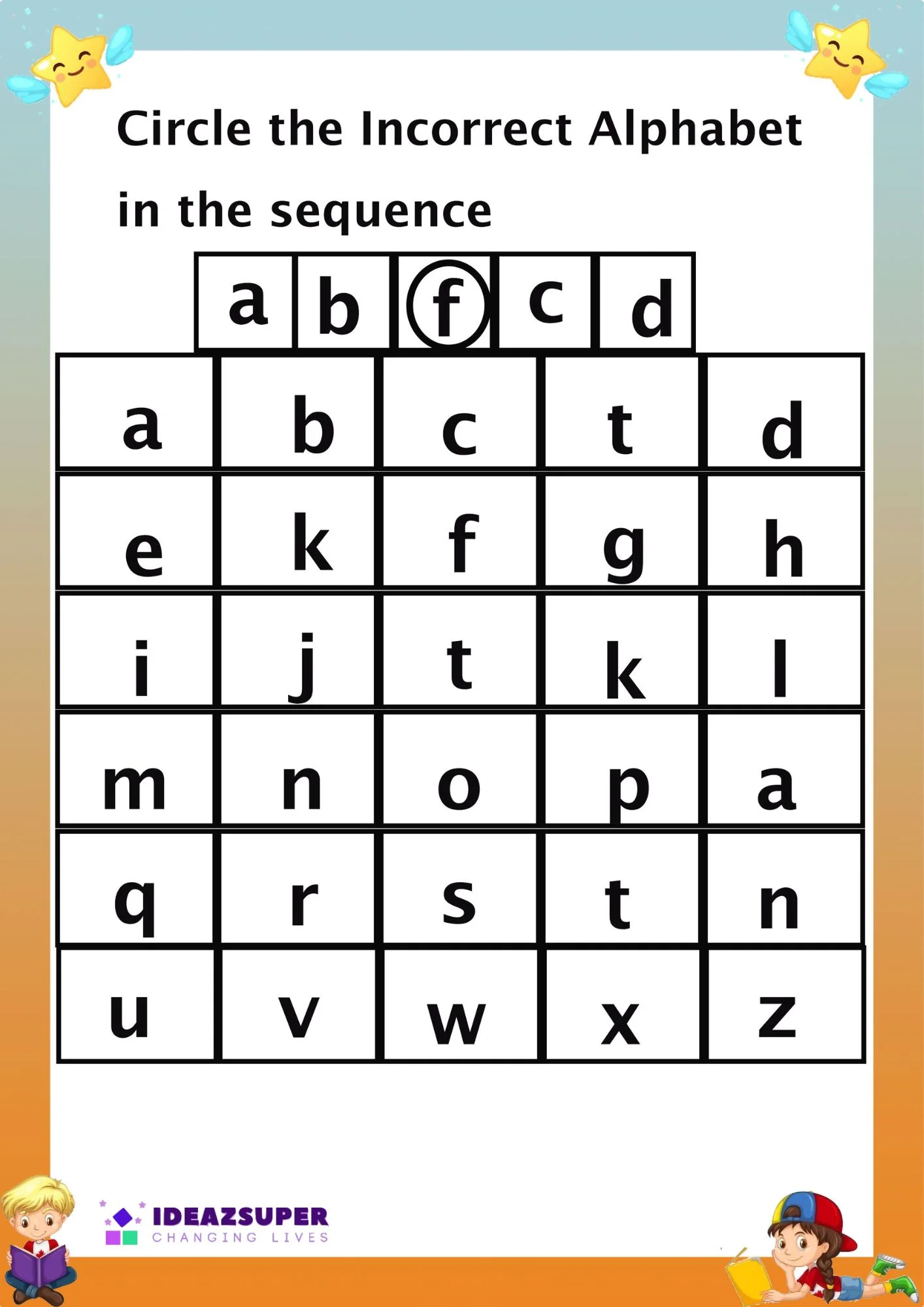 - Small letter identification (a–z)