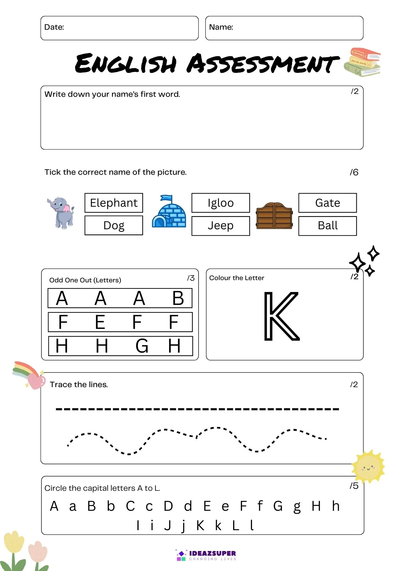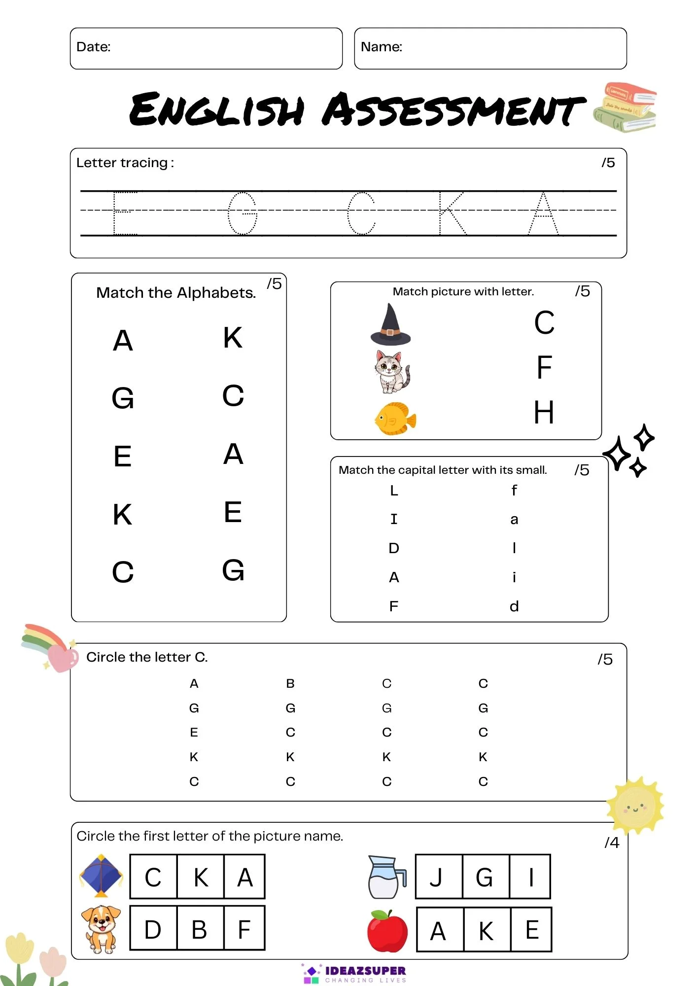 These English admission test practice worksheets for 3 to 4 year old kids help children prepare for school admission tests through simple and engaging activities. The worksheets cover alphabet recognition, phonics, matching, tracing, and basic vocabulary.