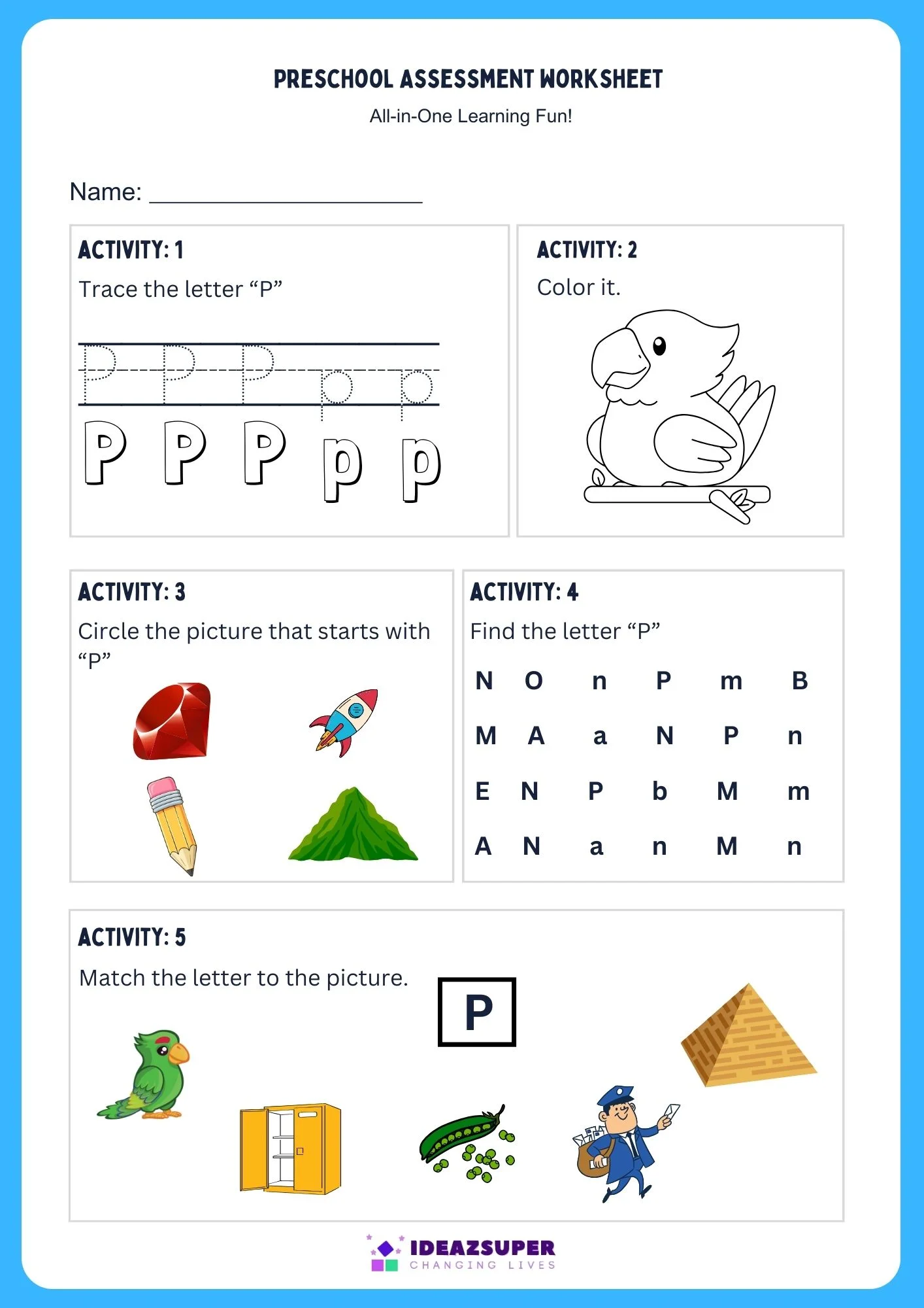 ➡️ Alphabet Assessment Worksheets – review all letters