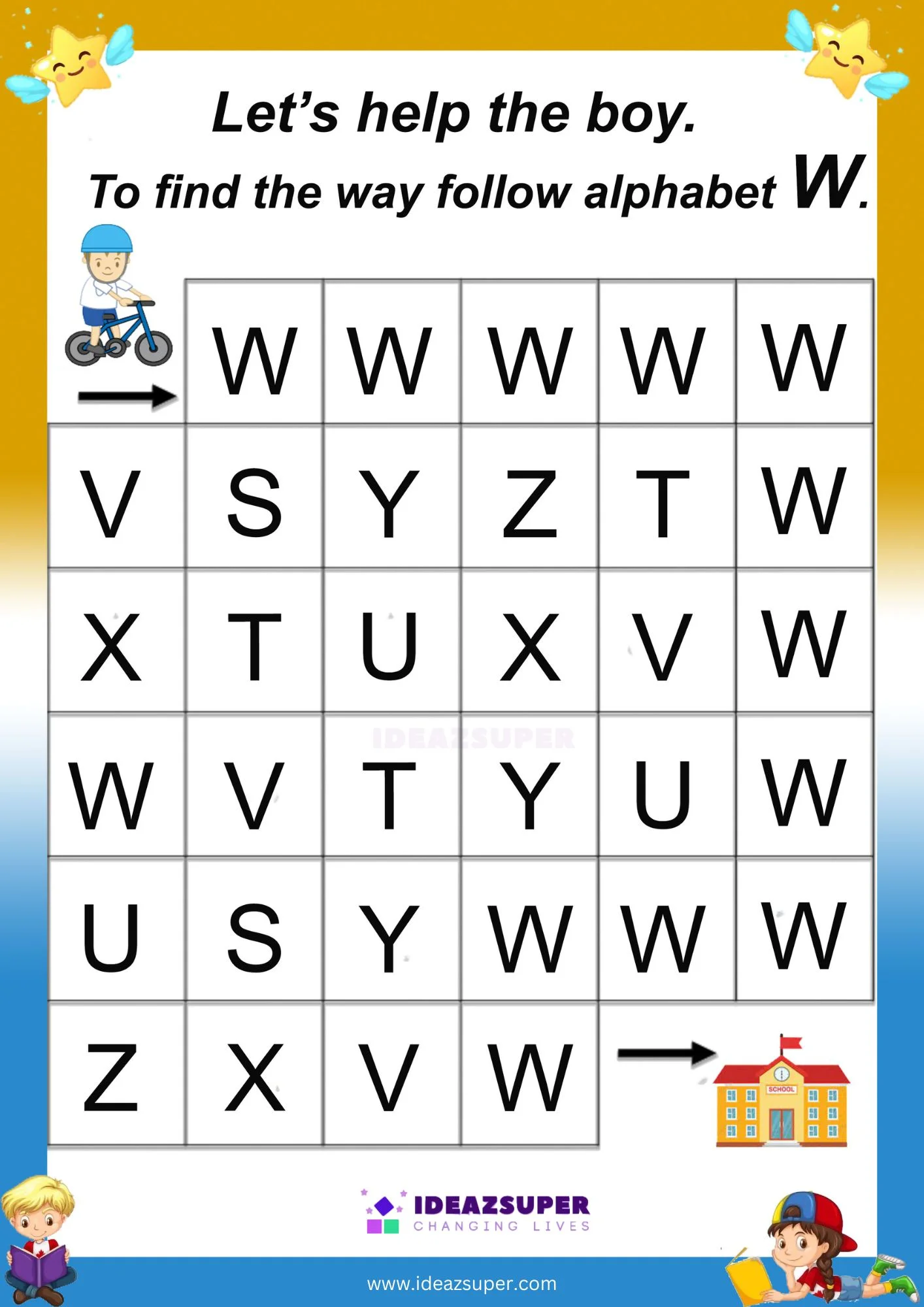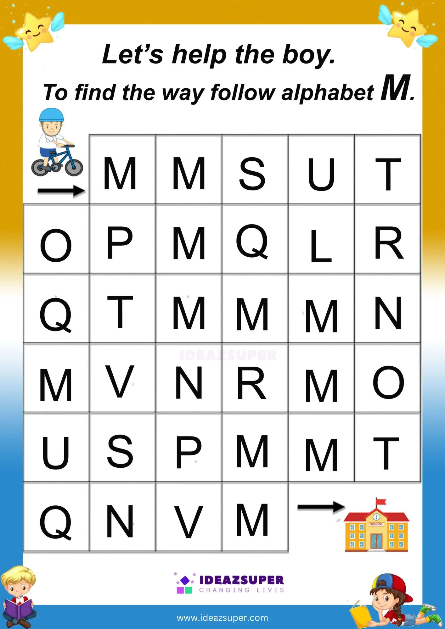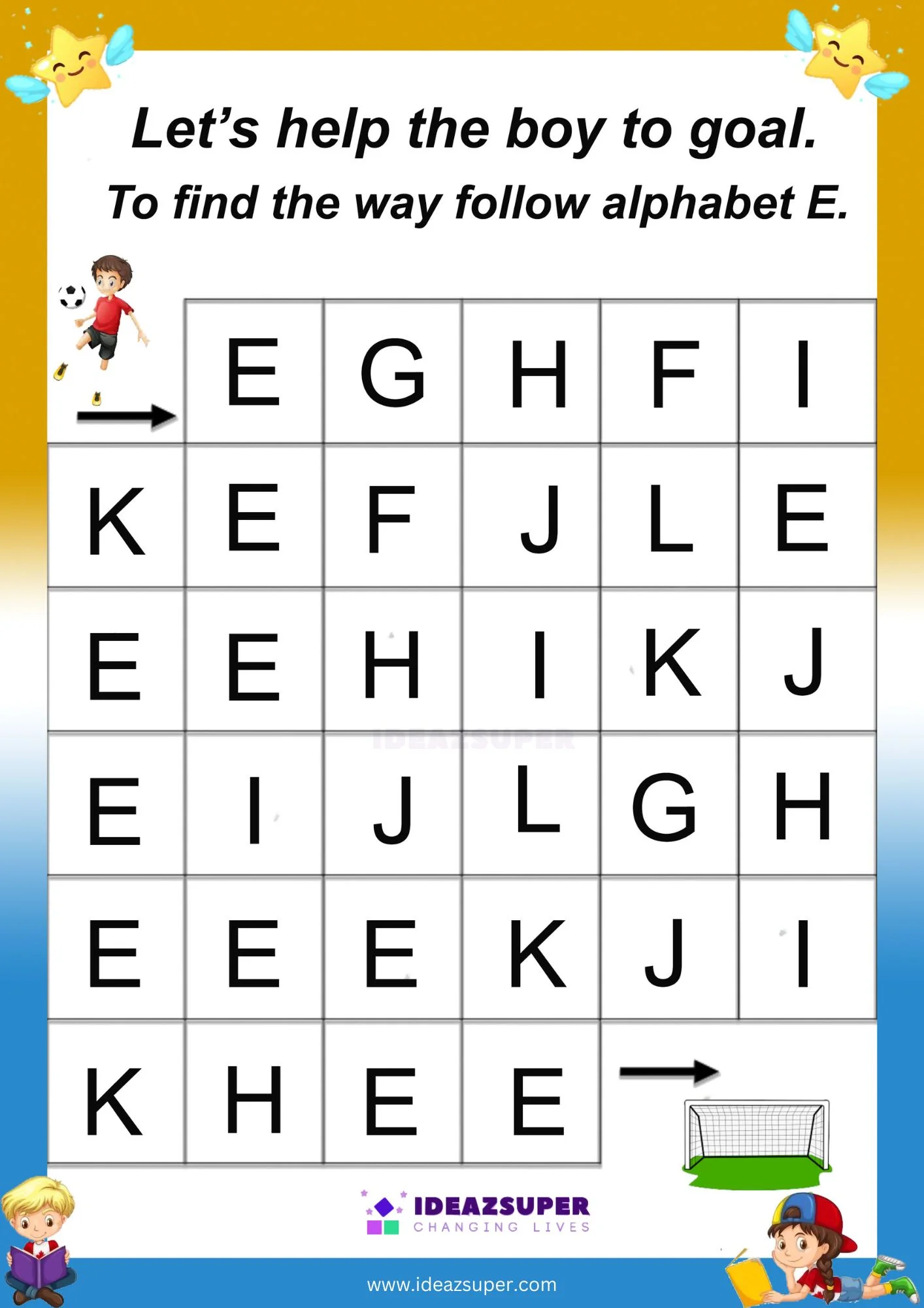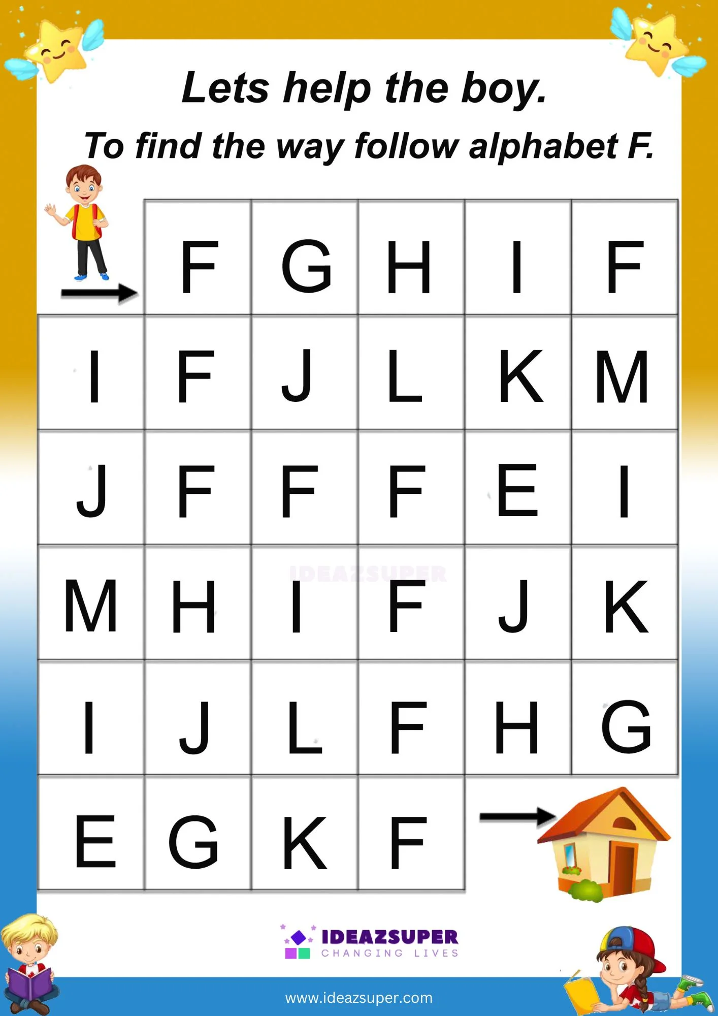 Introduce your child to capital letters (A–Z) with our fun and interactive Alphabet Identification Worksheets. Designed for ages 2–5, this set includes 26 “Find the Path” activities where children trace, follow, and identify uppercase letters.