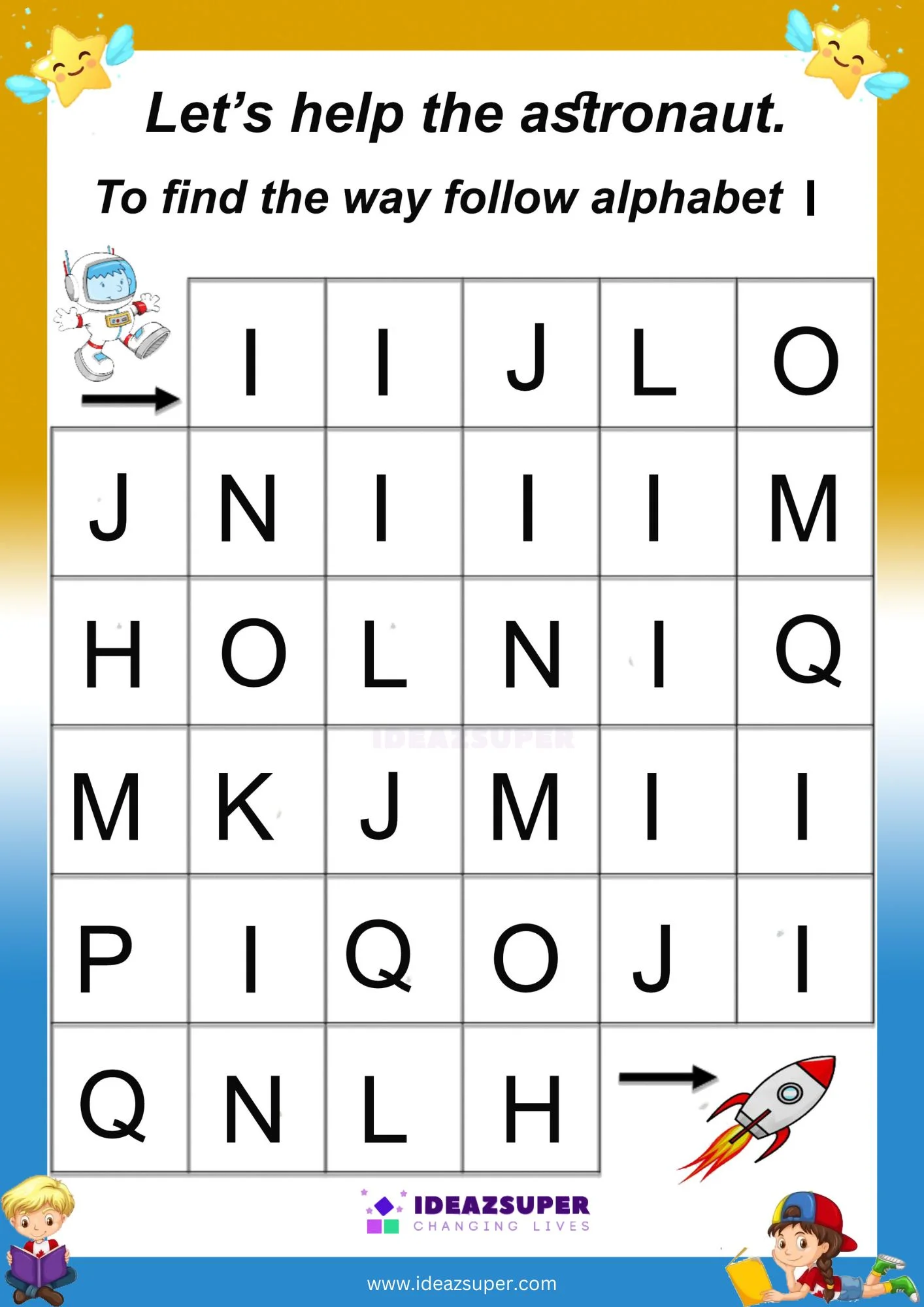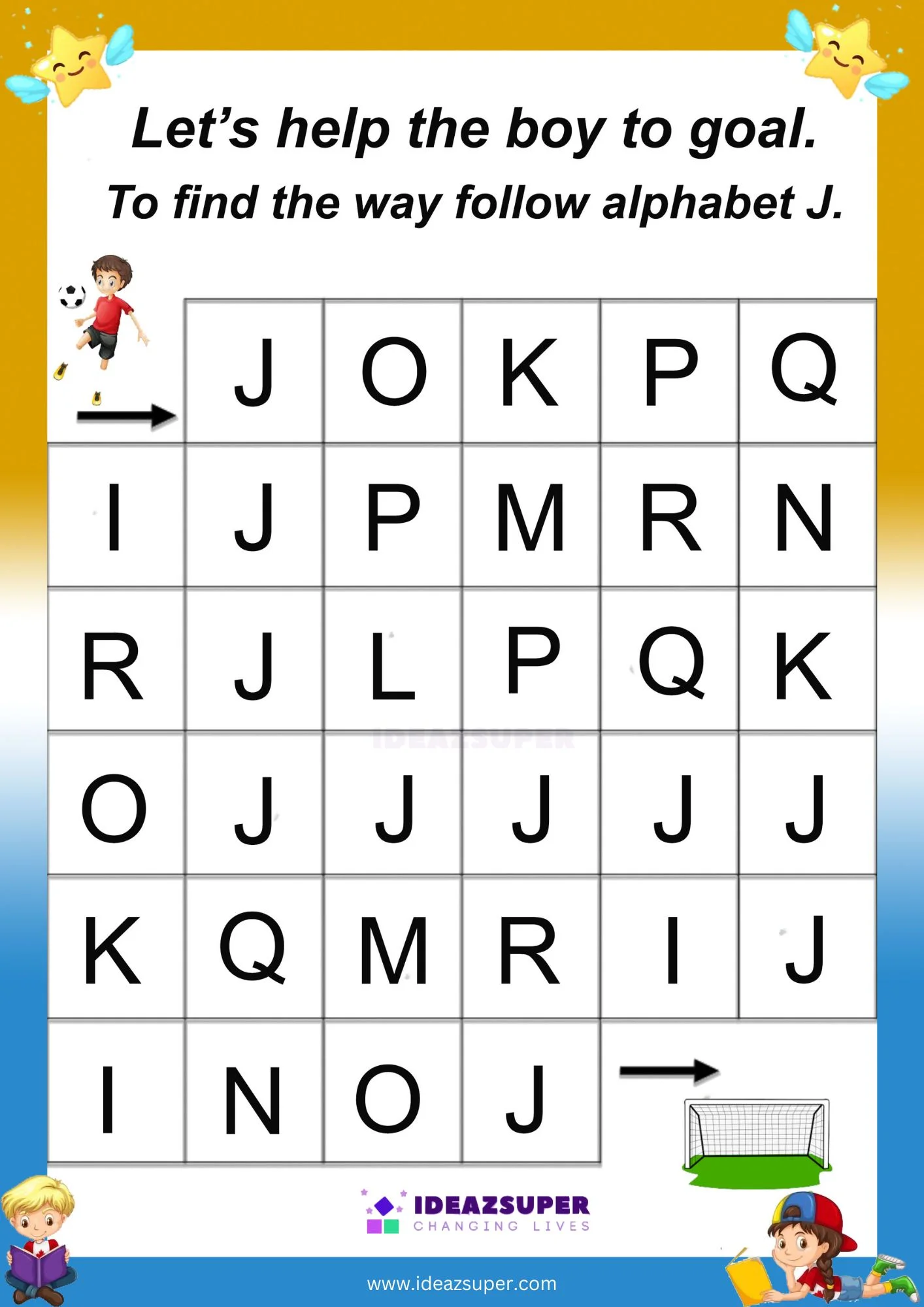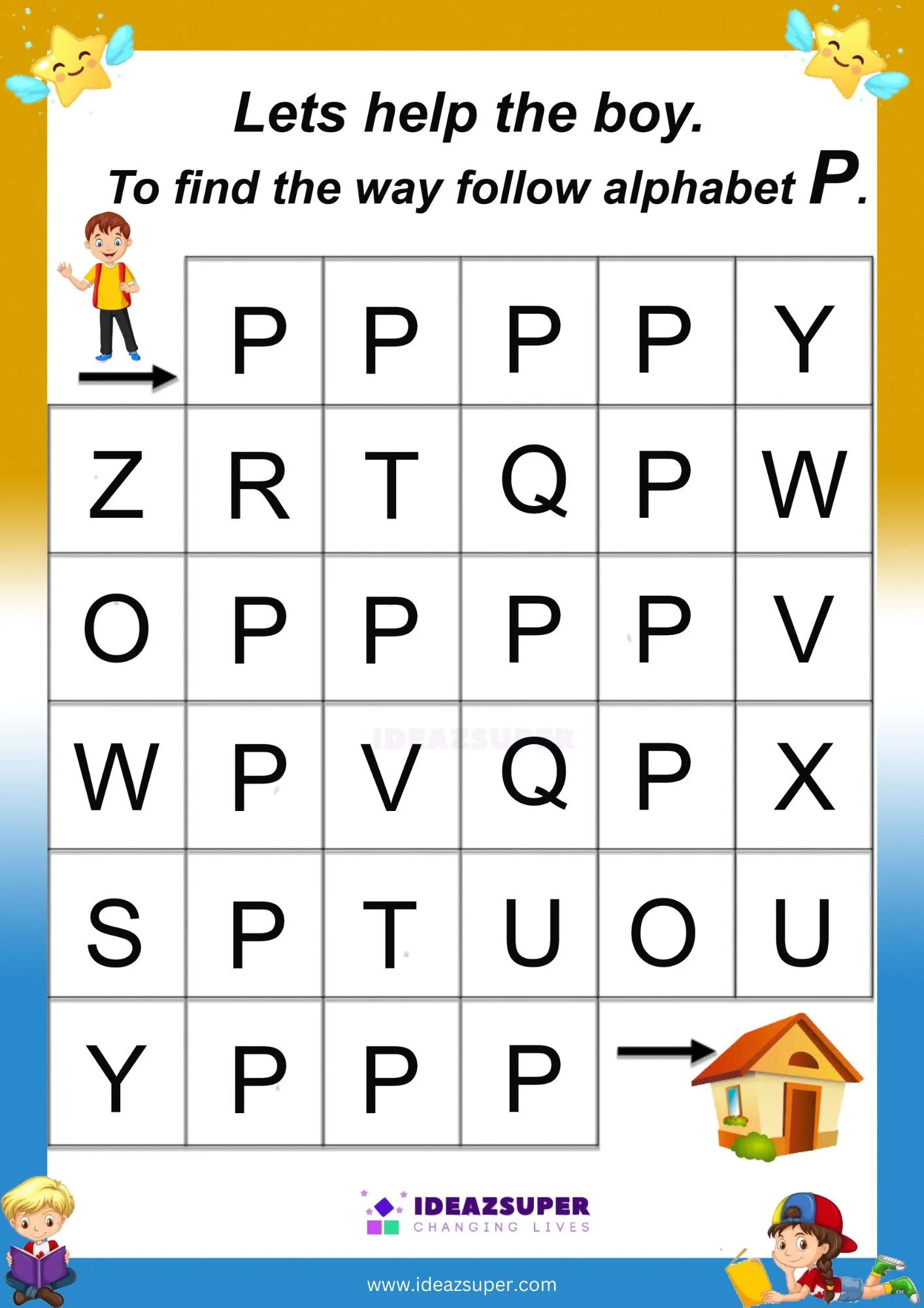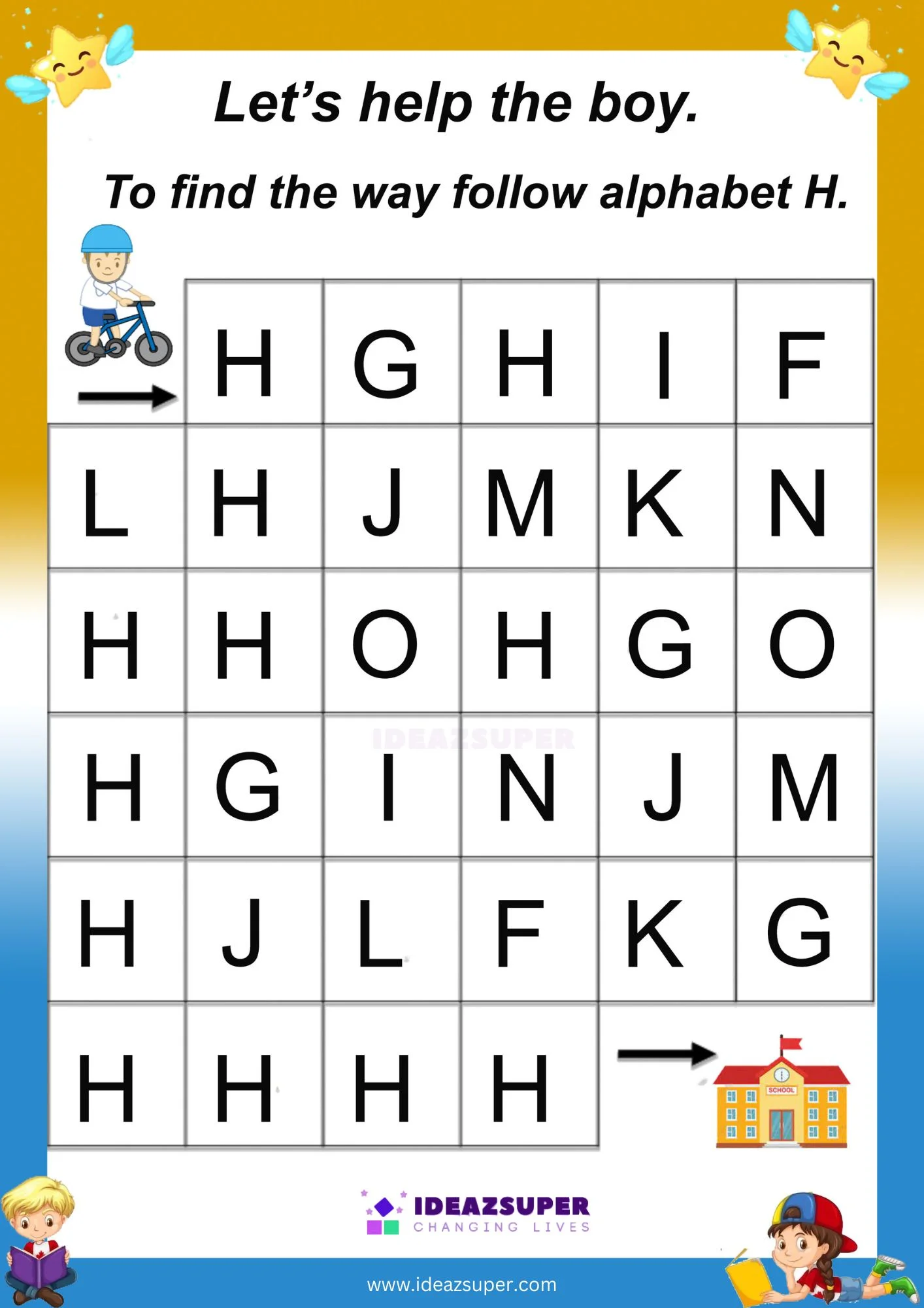 Introduce your child to capital letters (A–Z) with our fun and interactive Alphabet Identification Worksheets. Designed for ages 2–5, this set includes 26 “Find the Path” activities where children trace, follow, and identify uppercase letters.