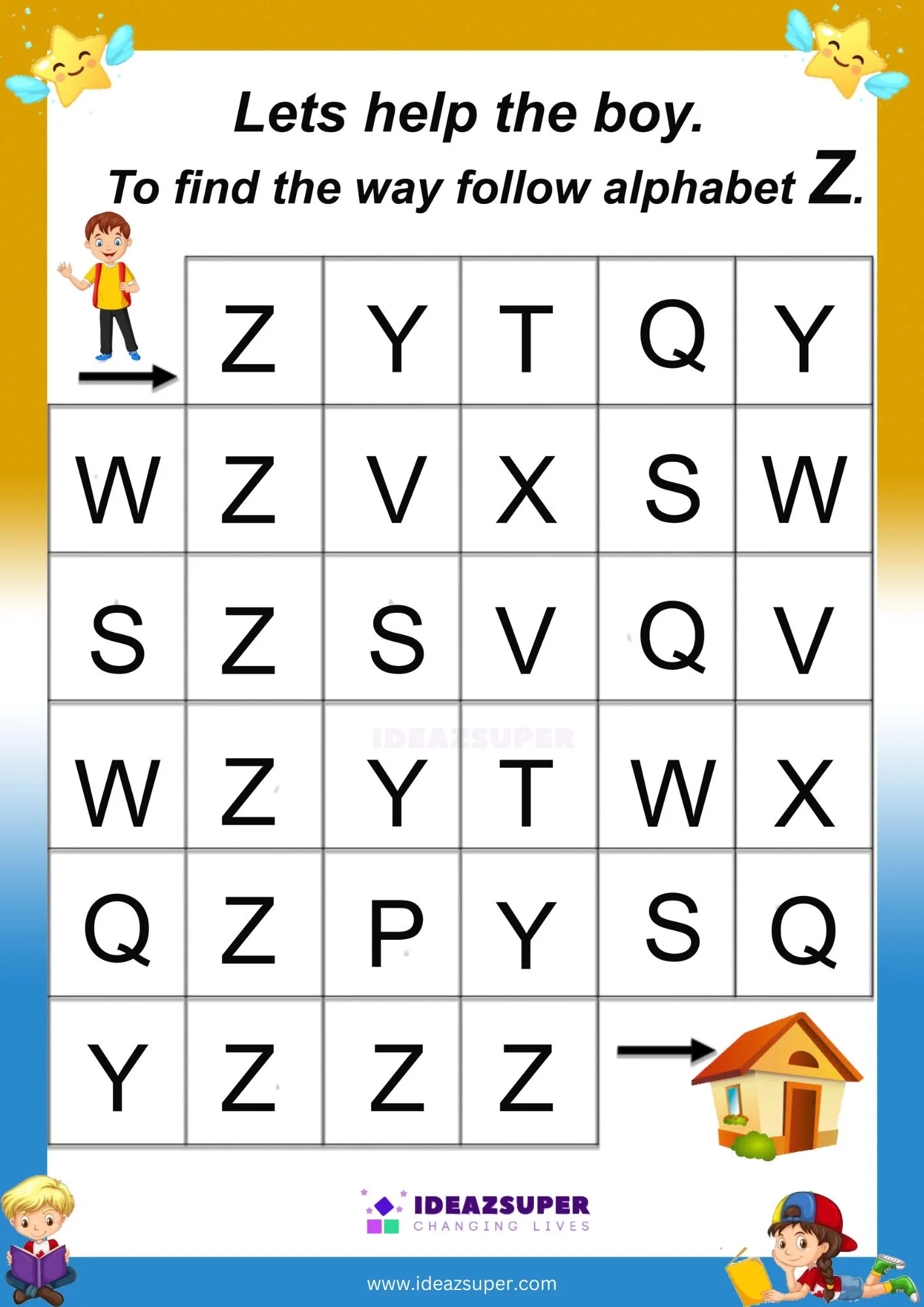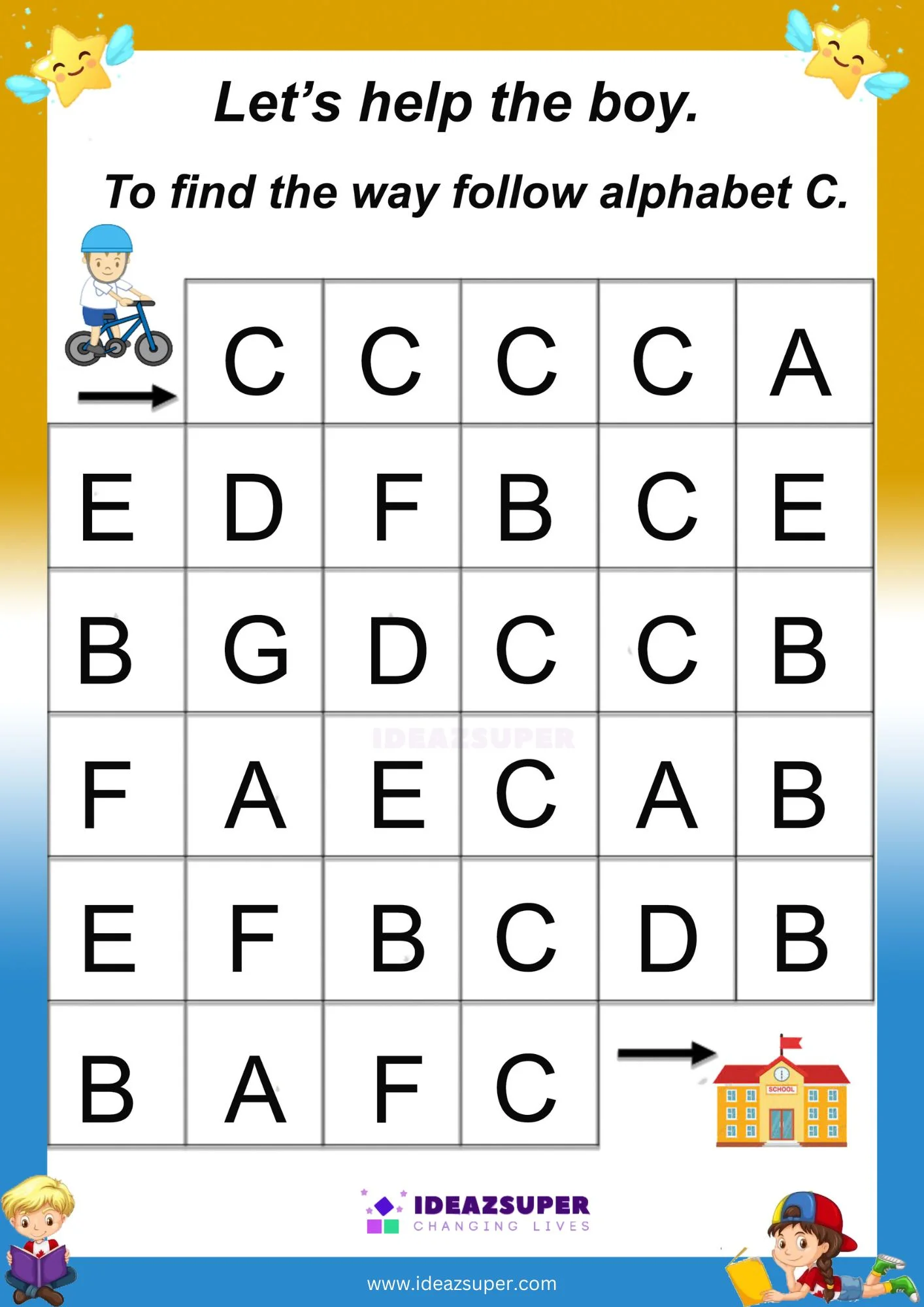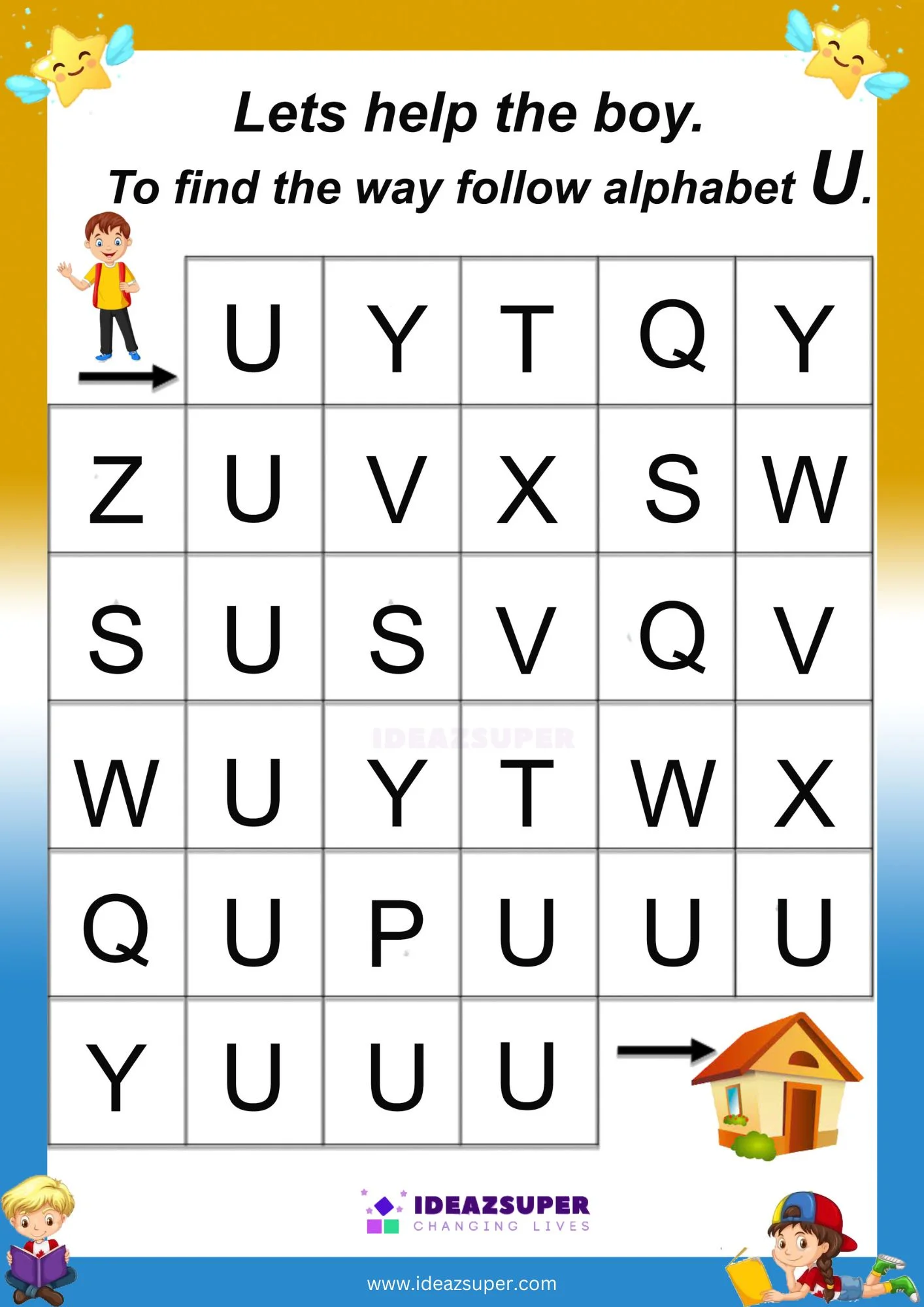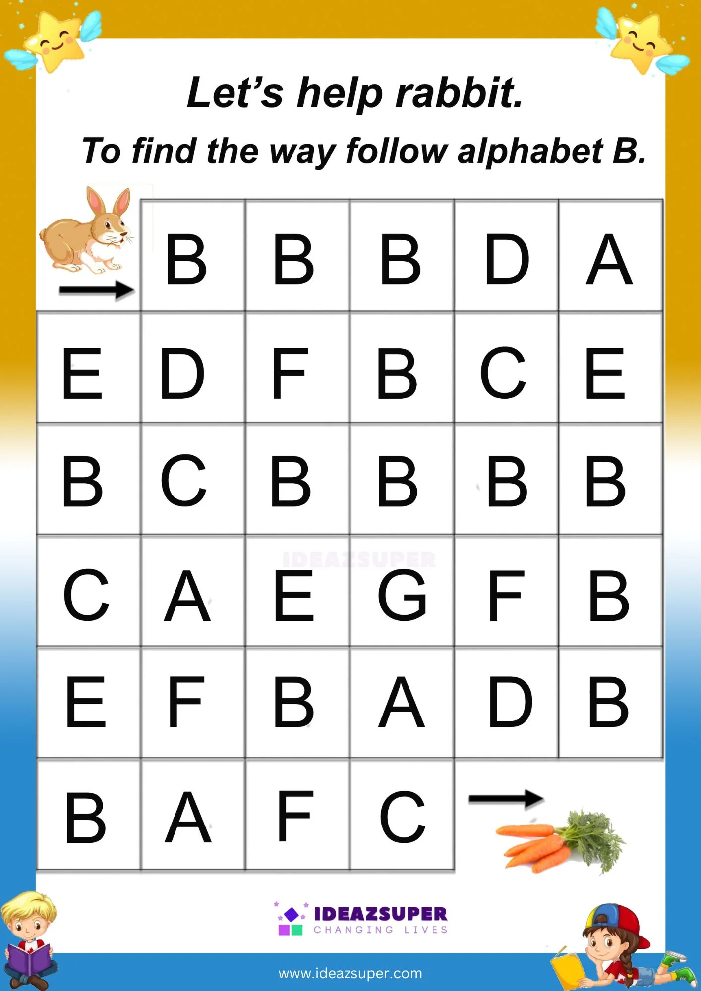 Introduce your child to capital letters (A–Z) with our fun and interactive Alphabet Identification Worksheets. Designed for ages 2–5, this set includes 26 “Find the Path” activities where children trace, follow, and identify uppercase letters.