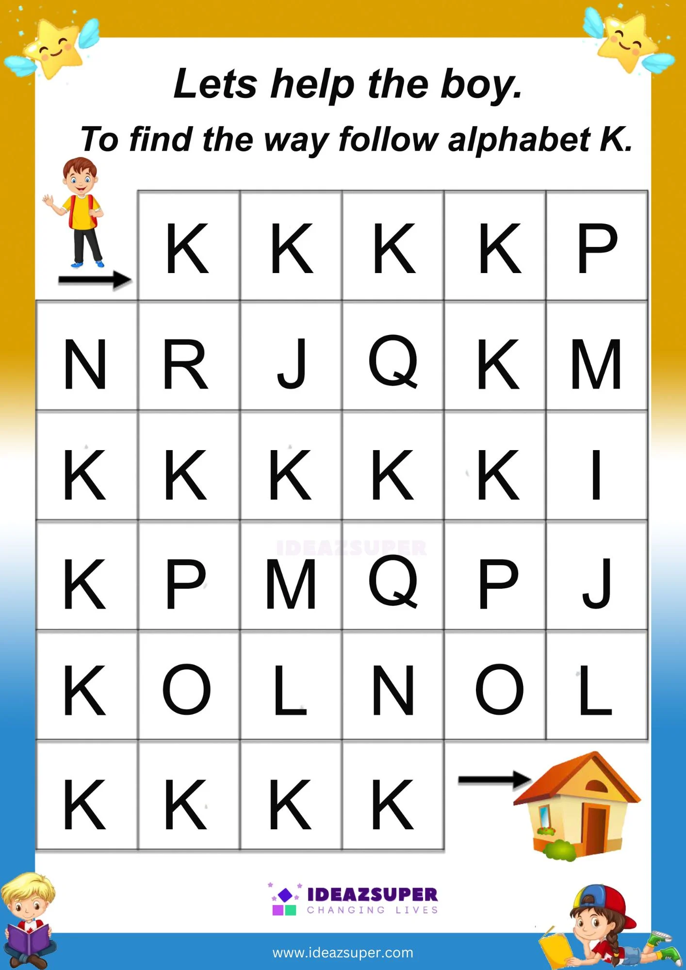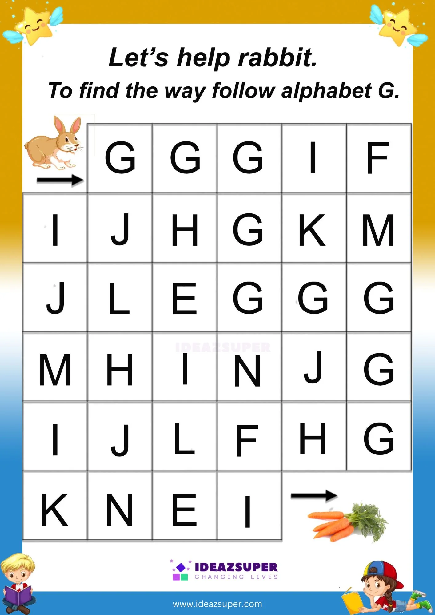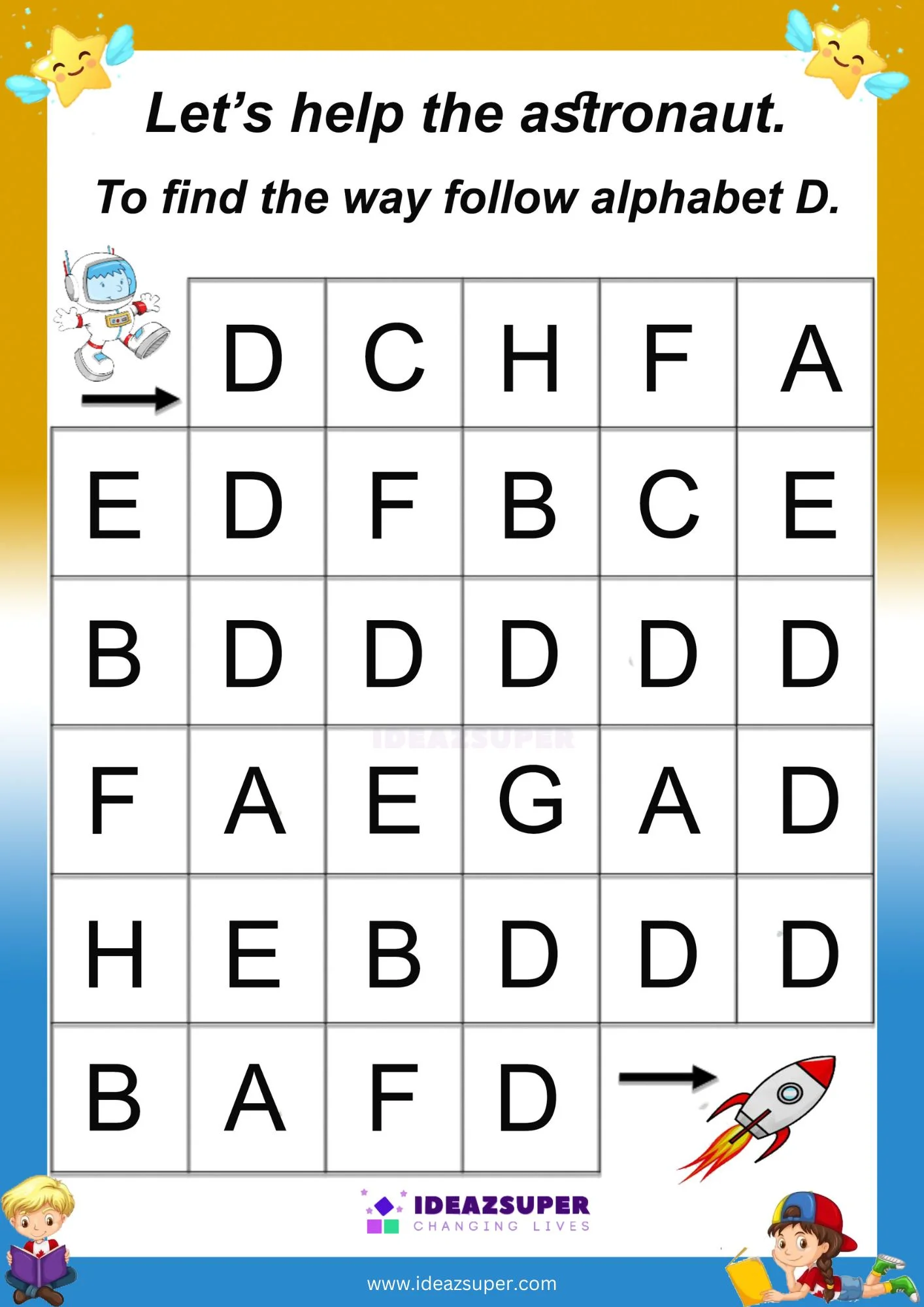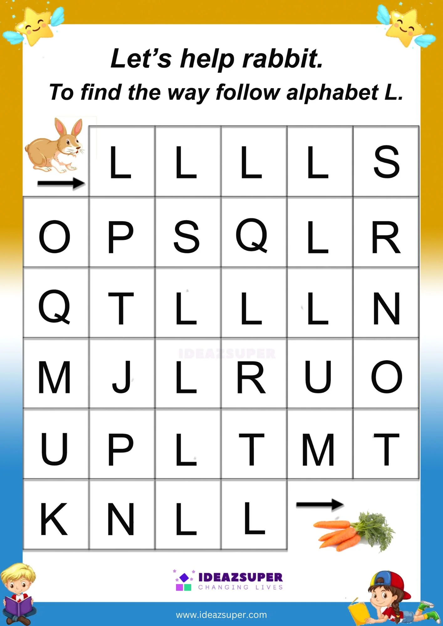 Introduce your child to capital letters (A–Z) with our fun and interactive Alphabet Identification Worksheets. Designed for ages 2–5, this set includes 26 “Find the Path” activities where children trace, follow, and identify uppercase letters.