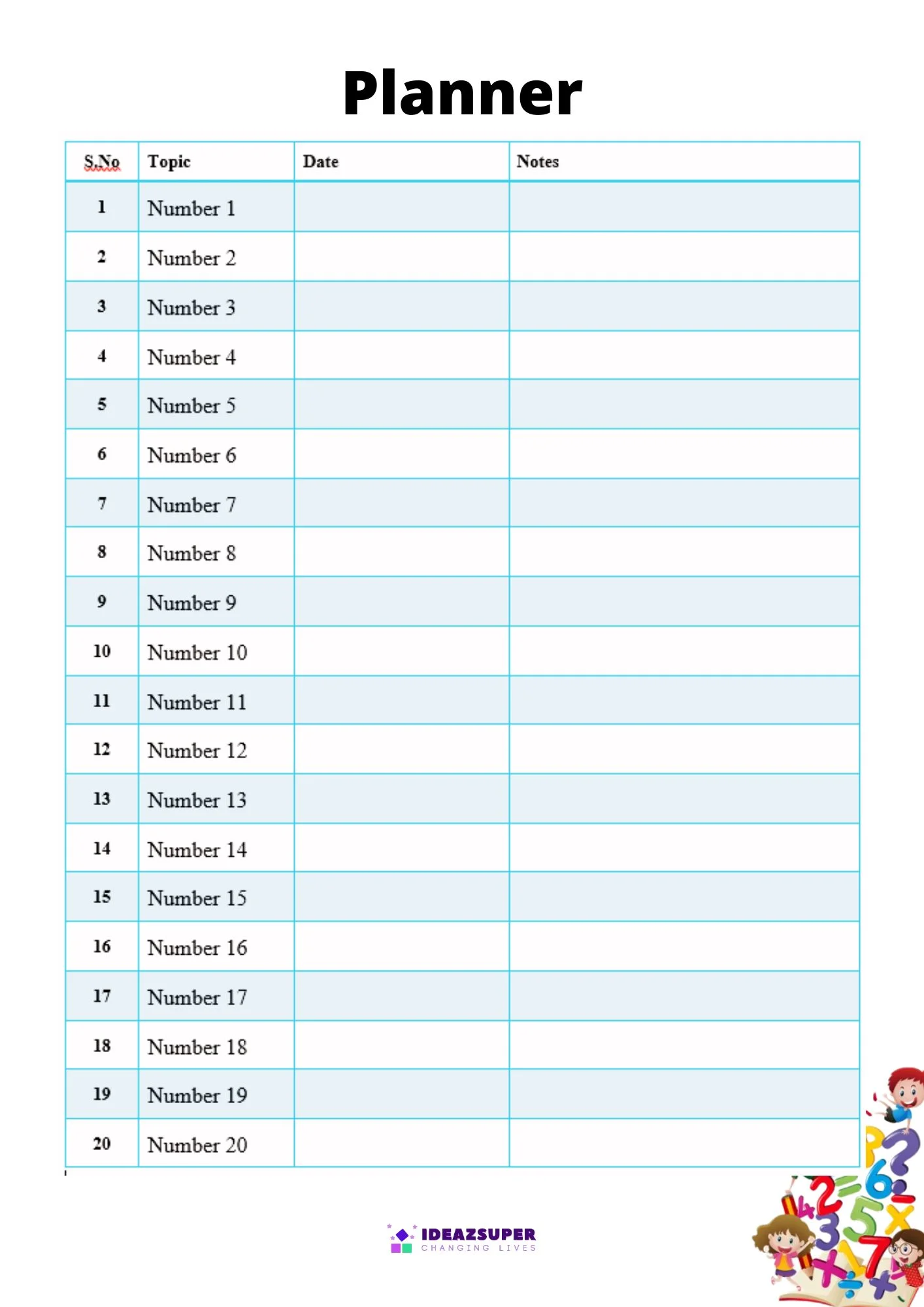 - Number sequencing