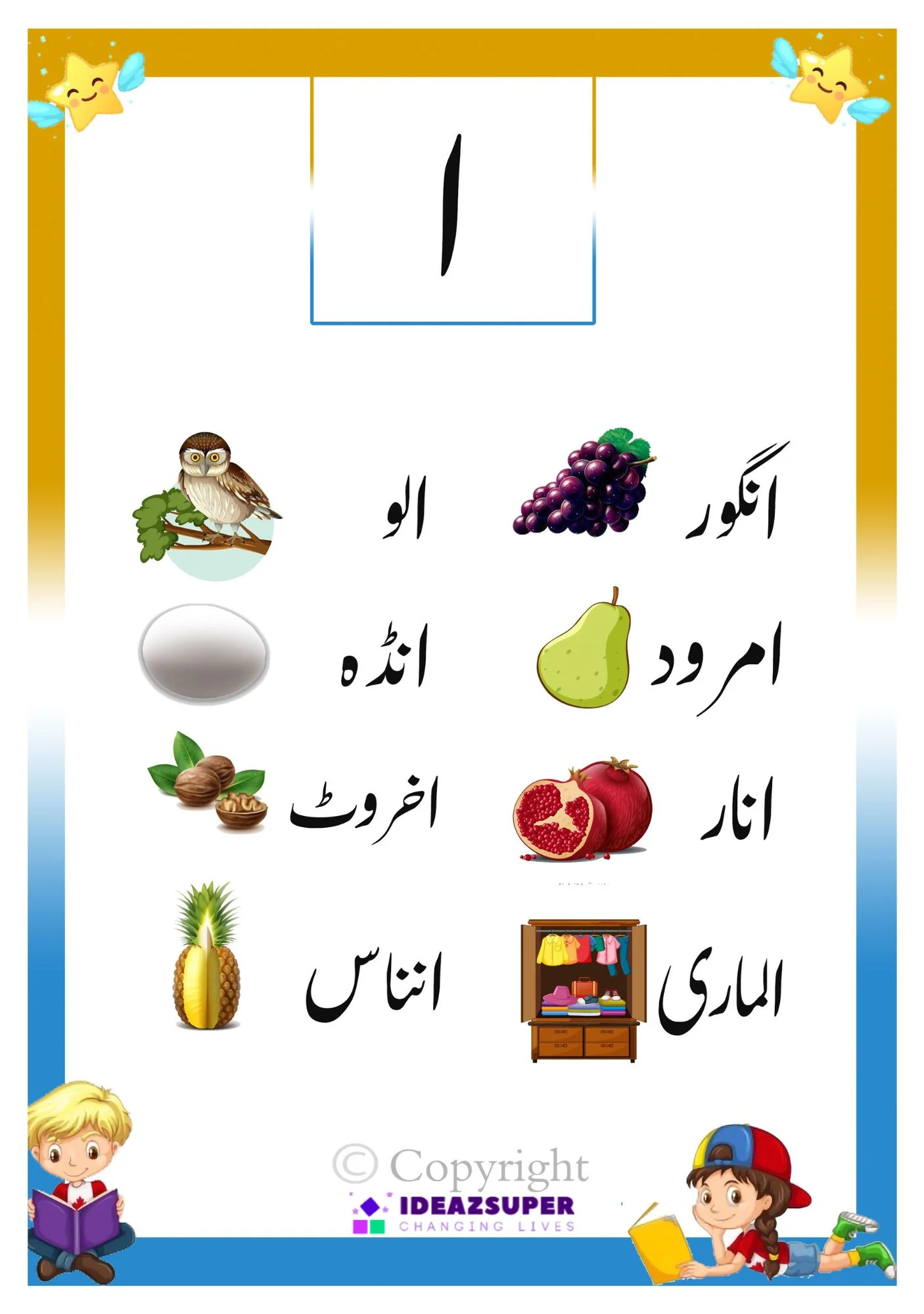 Introduce your child to the world of Urdu with our First Urdu Picture Book — a delightful visual journey from Alif to Yay designed especially for toddlers and preschoolers. Created by early childhood experts at IdeazSuper, this free printable book is your child’s first step into Urdu vocabulary, sounds, and object recognition.