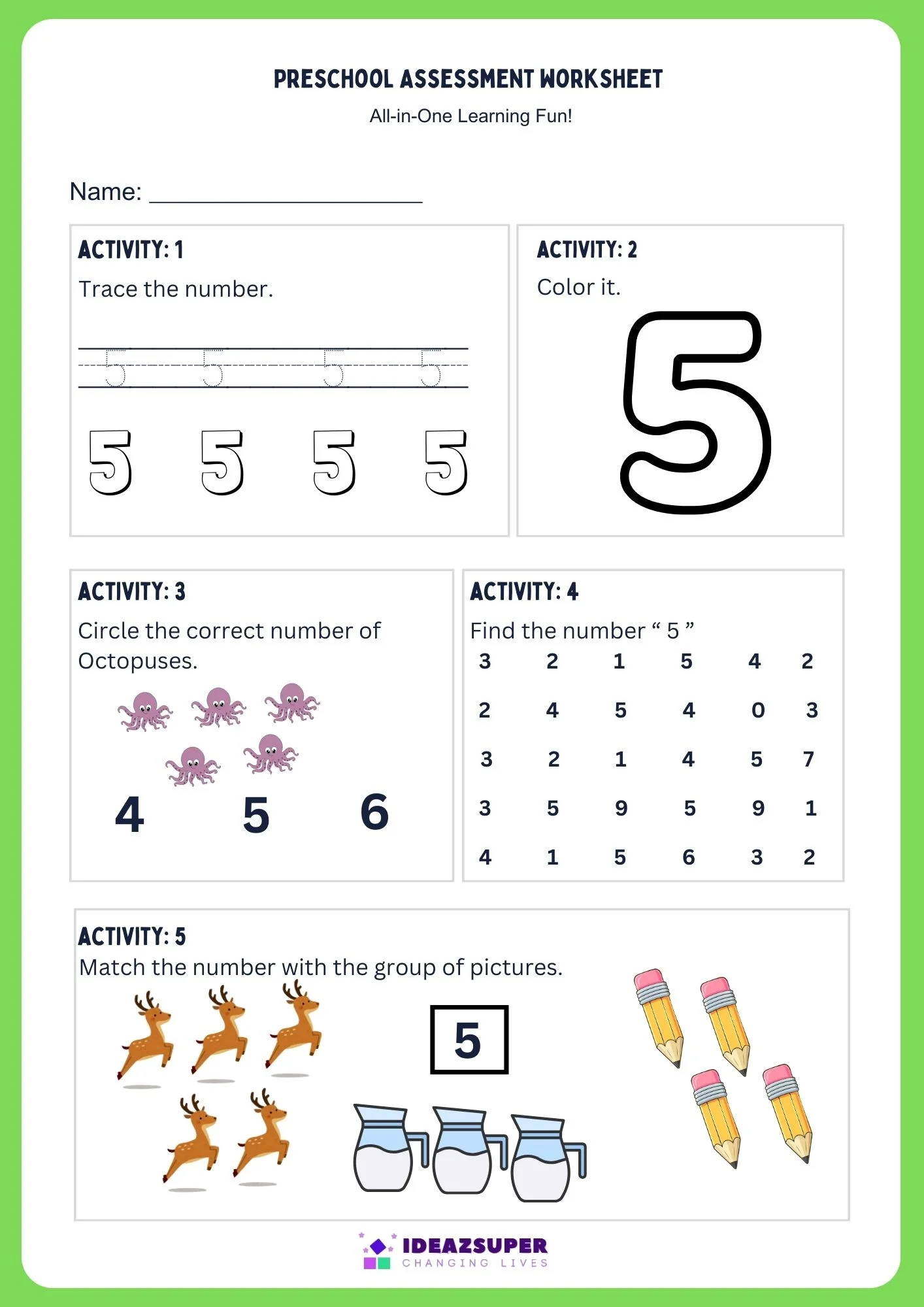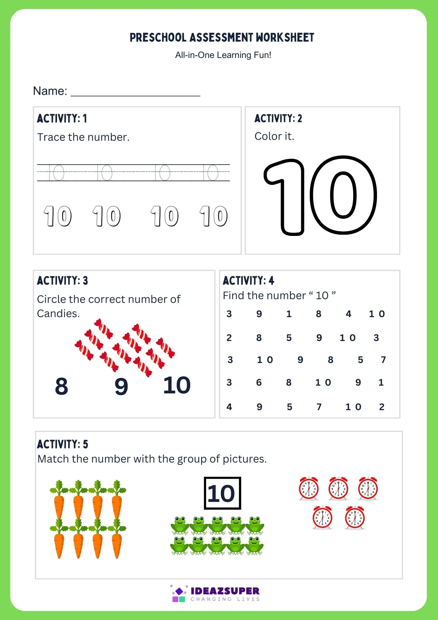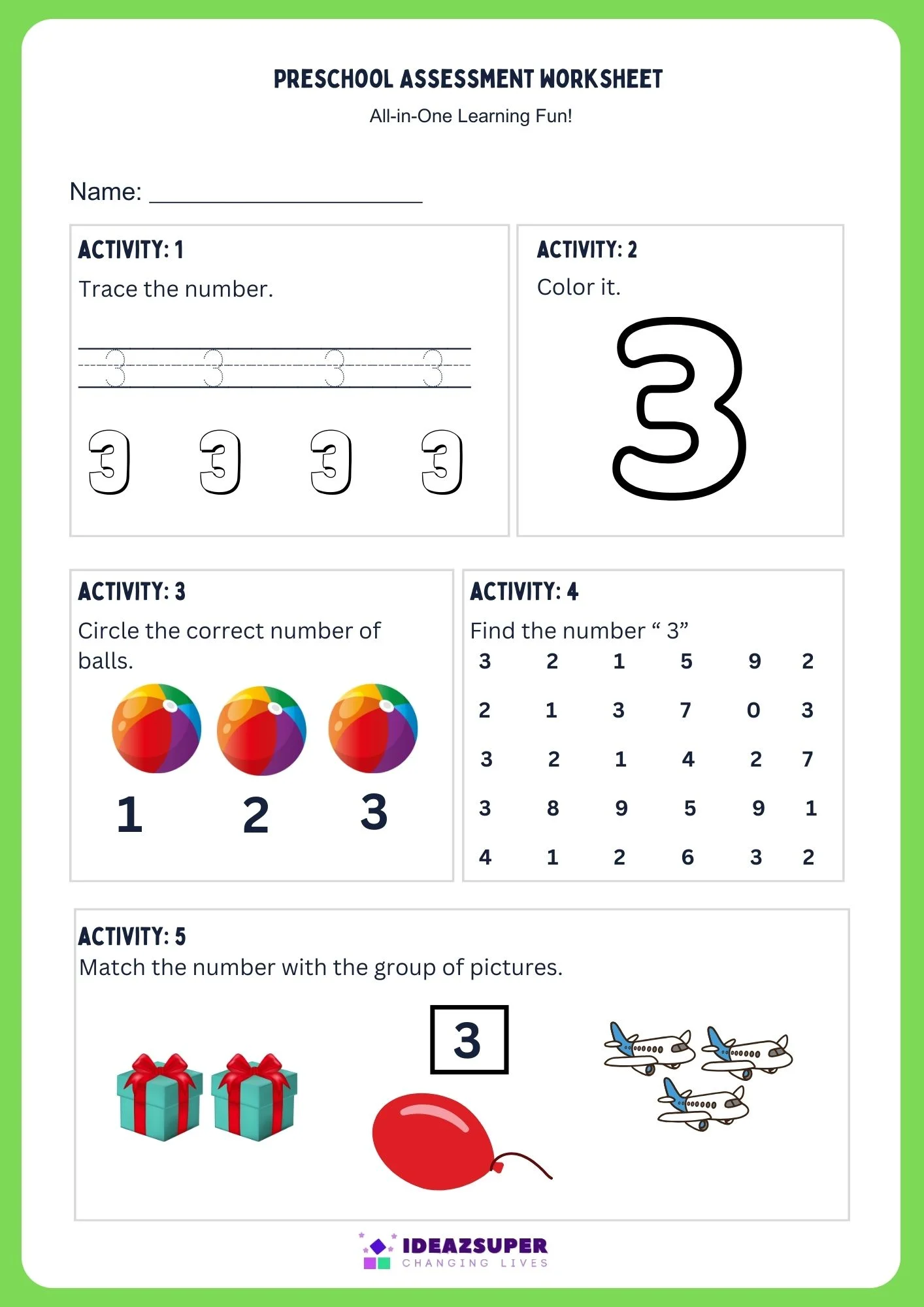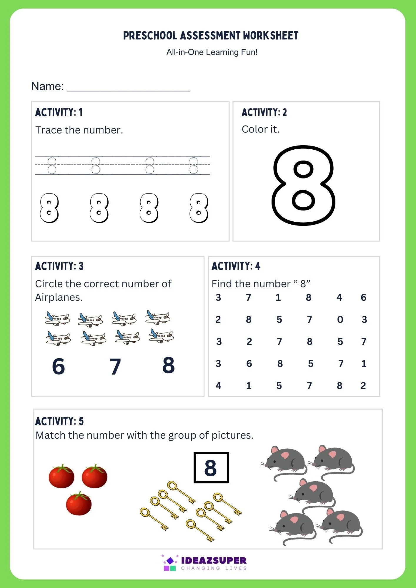 Make early math exciting with our Math Activity Worksheets! Each worksheet focuses on one number (0–10) and includes five engaging activities—tracing, coloring, counting, and matching—to help children understand numbers through play.