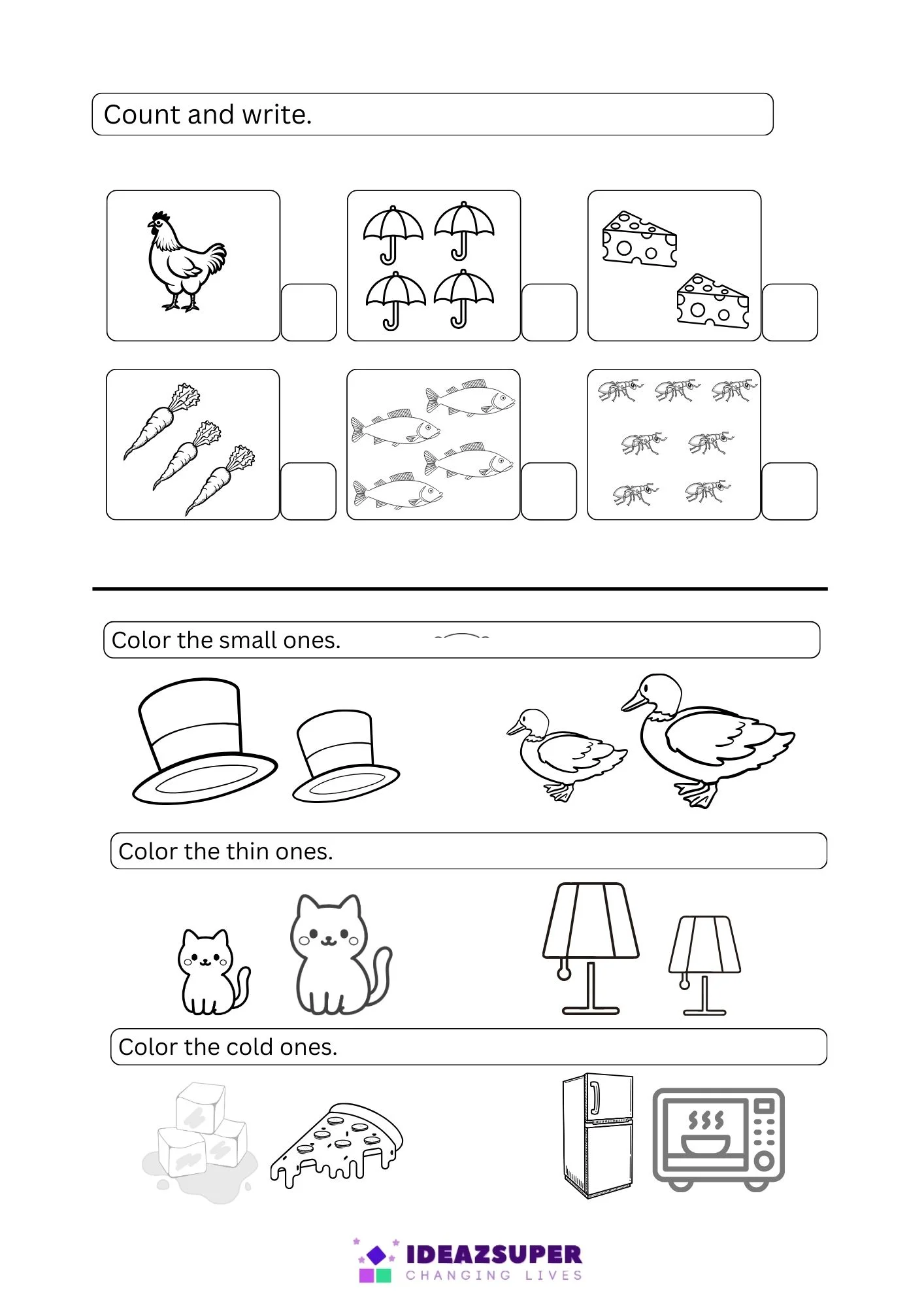 These Math assessment worksheets are created for Pre-KG, Montessori, and FS-1 children to practice numbers, counting, matching, shapes, and basic math skills following an exam pattern.