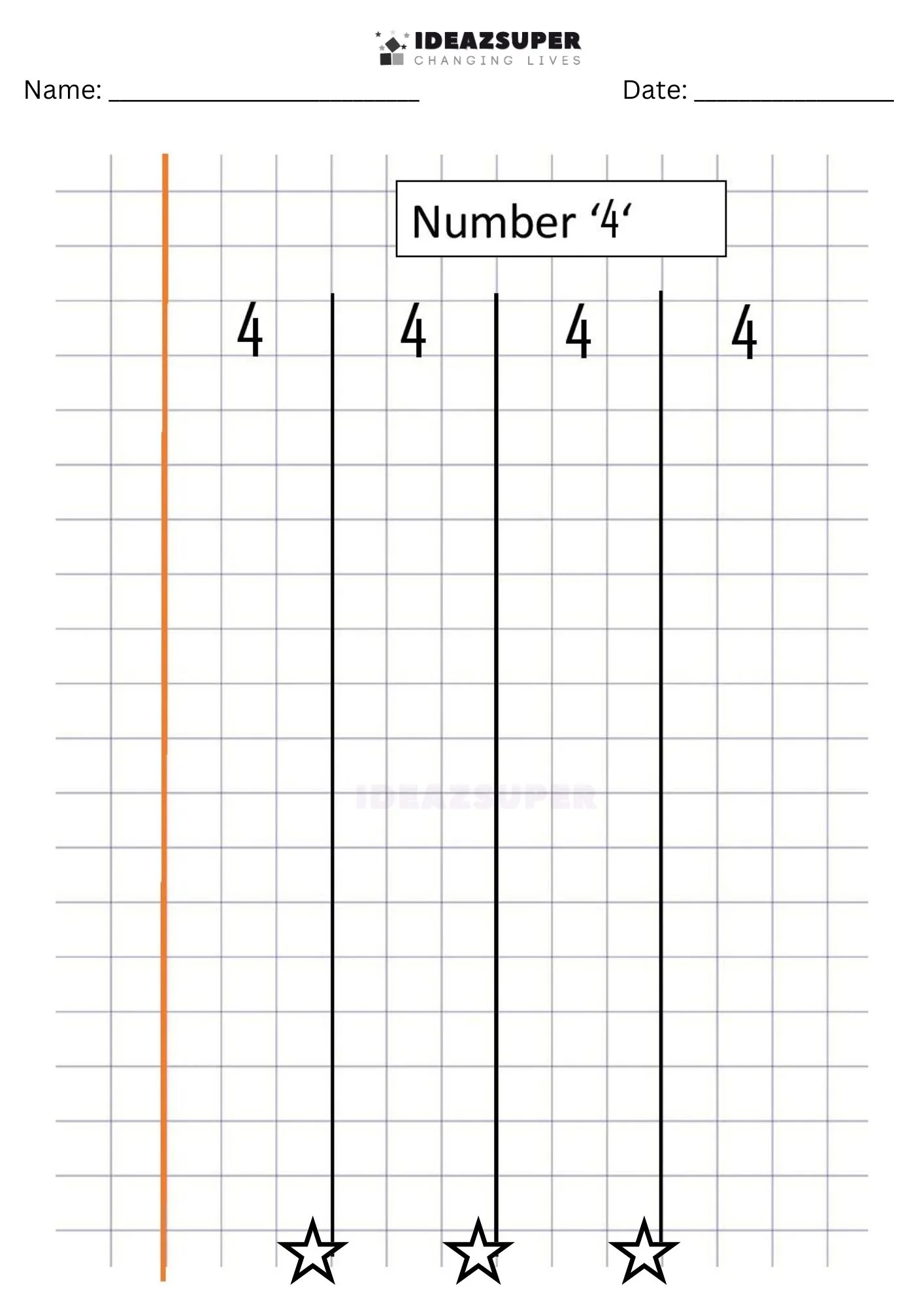 Kids will learn to write the number 4 and revise numbers 1, 4, and 7.