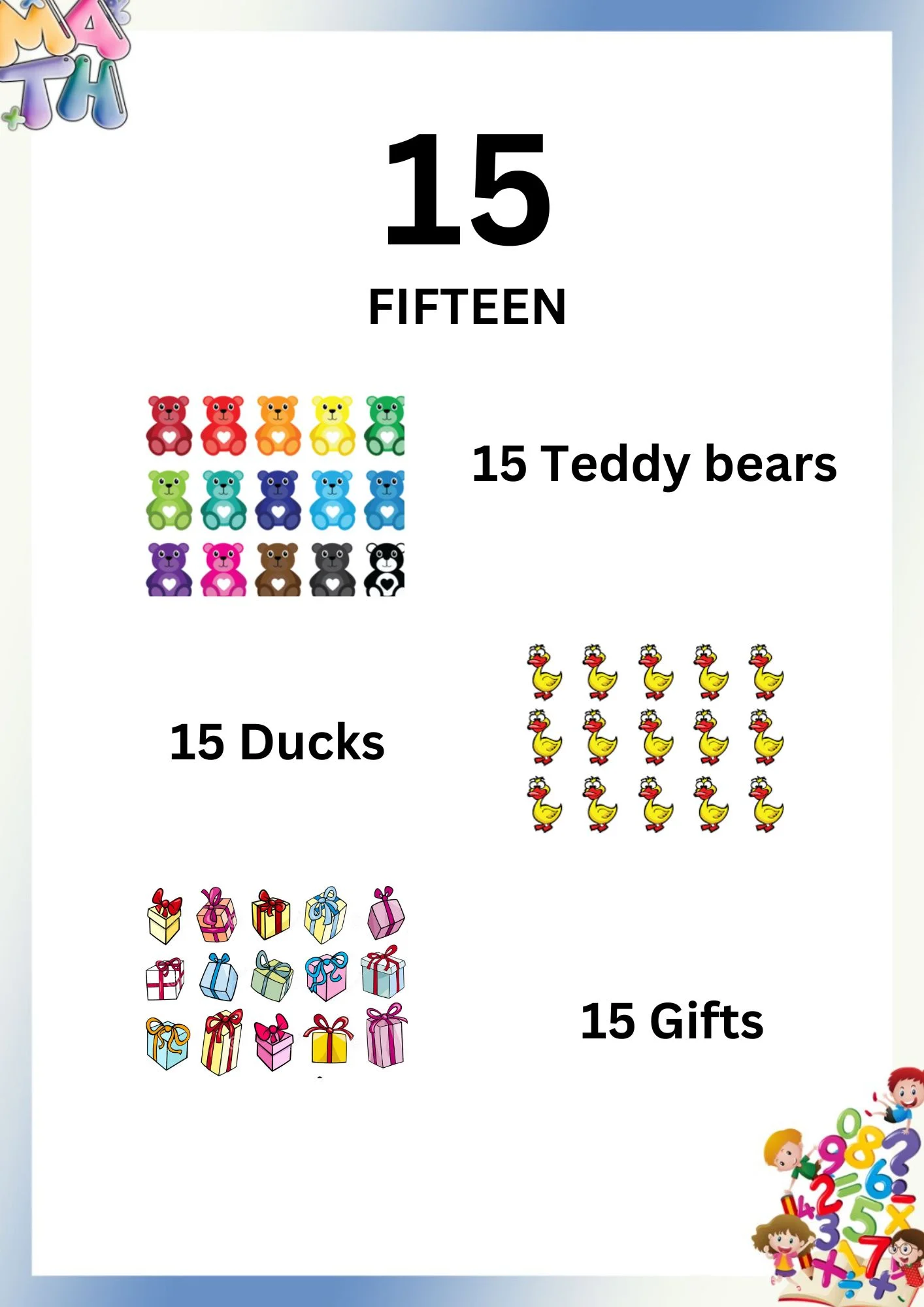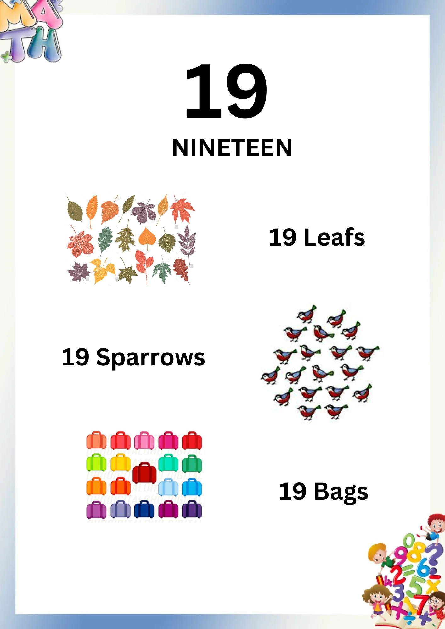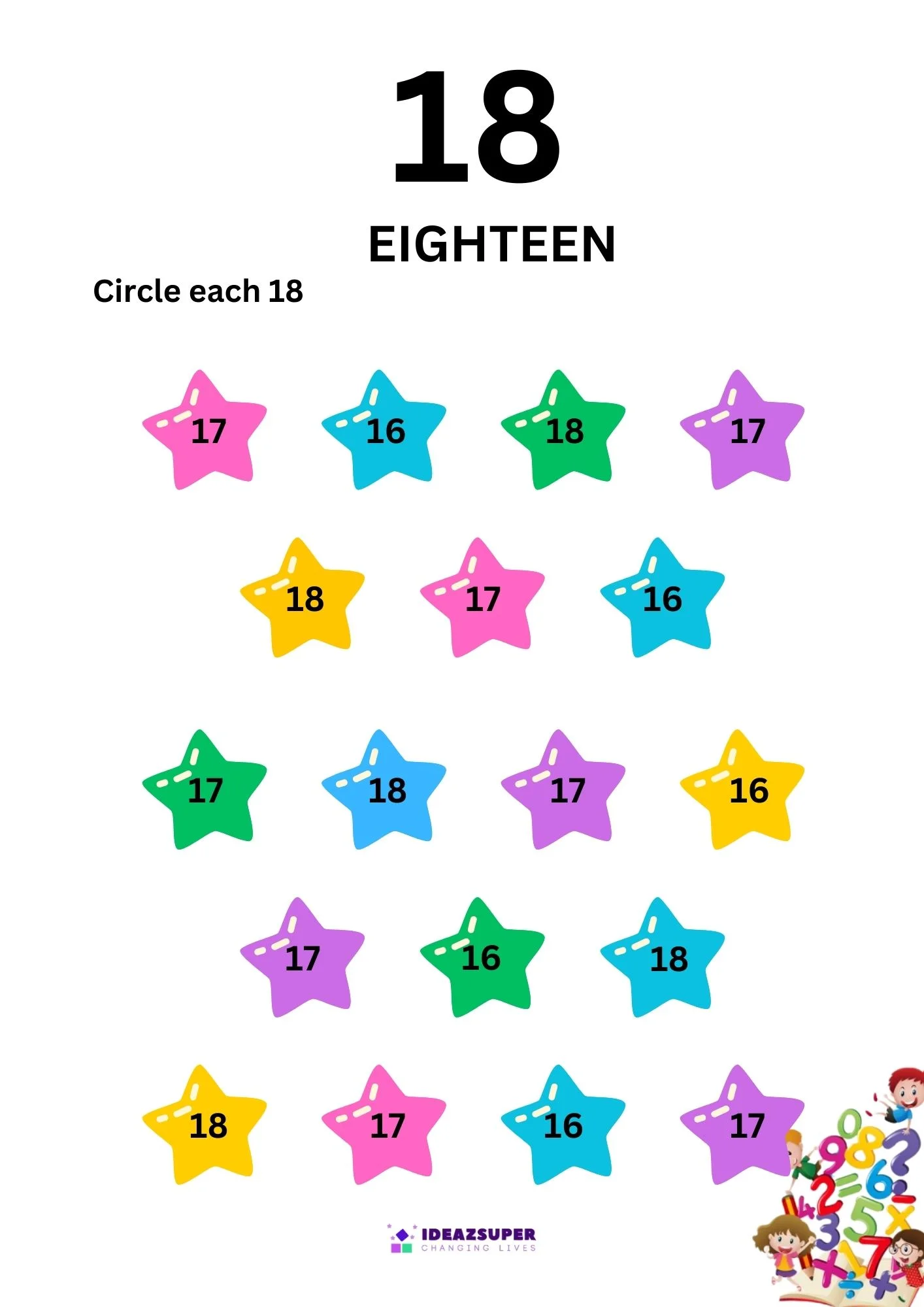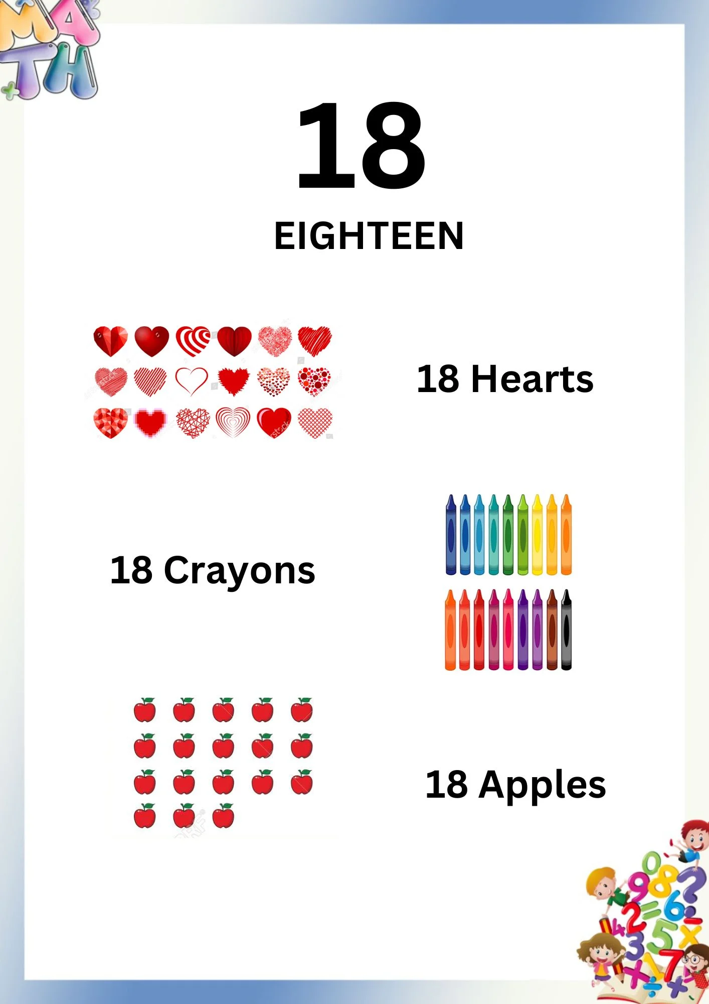 - Number recognition (1–20)