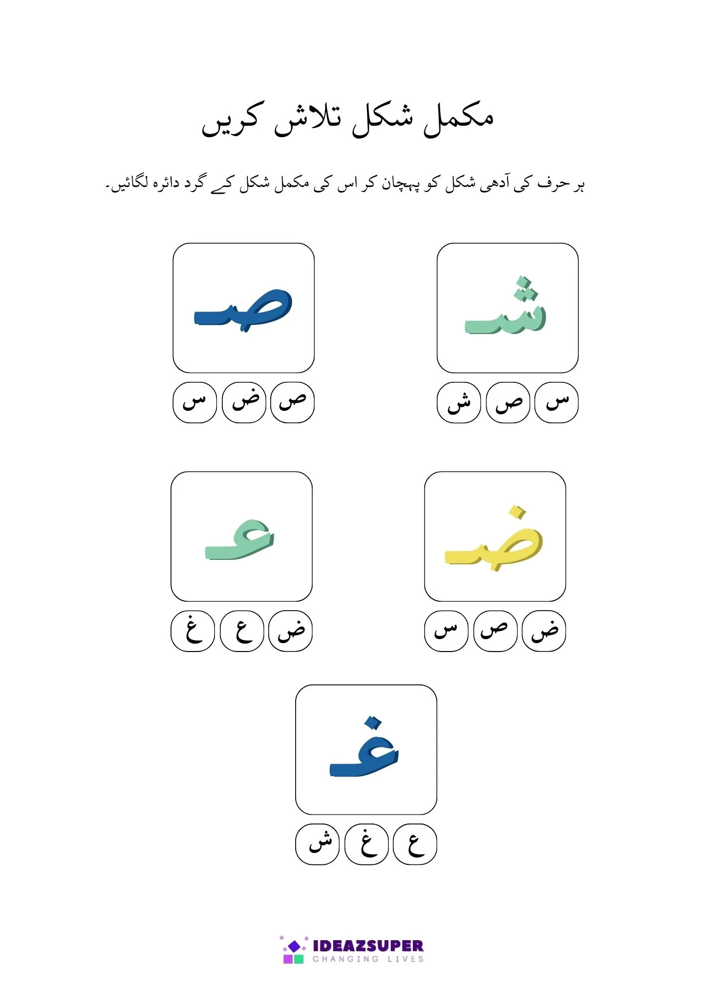 Urdu Adhi Ashkaal & Mukammal Huroof Find and Circle Worksheet for Kids