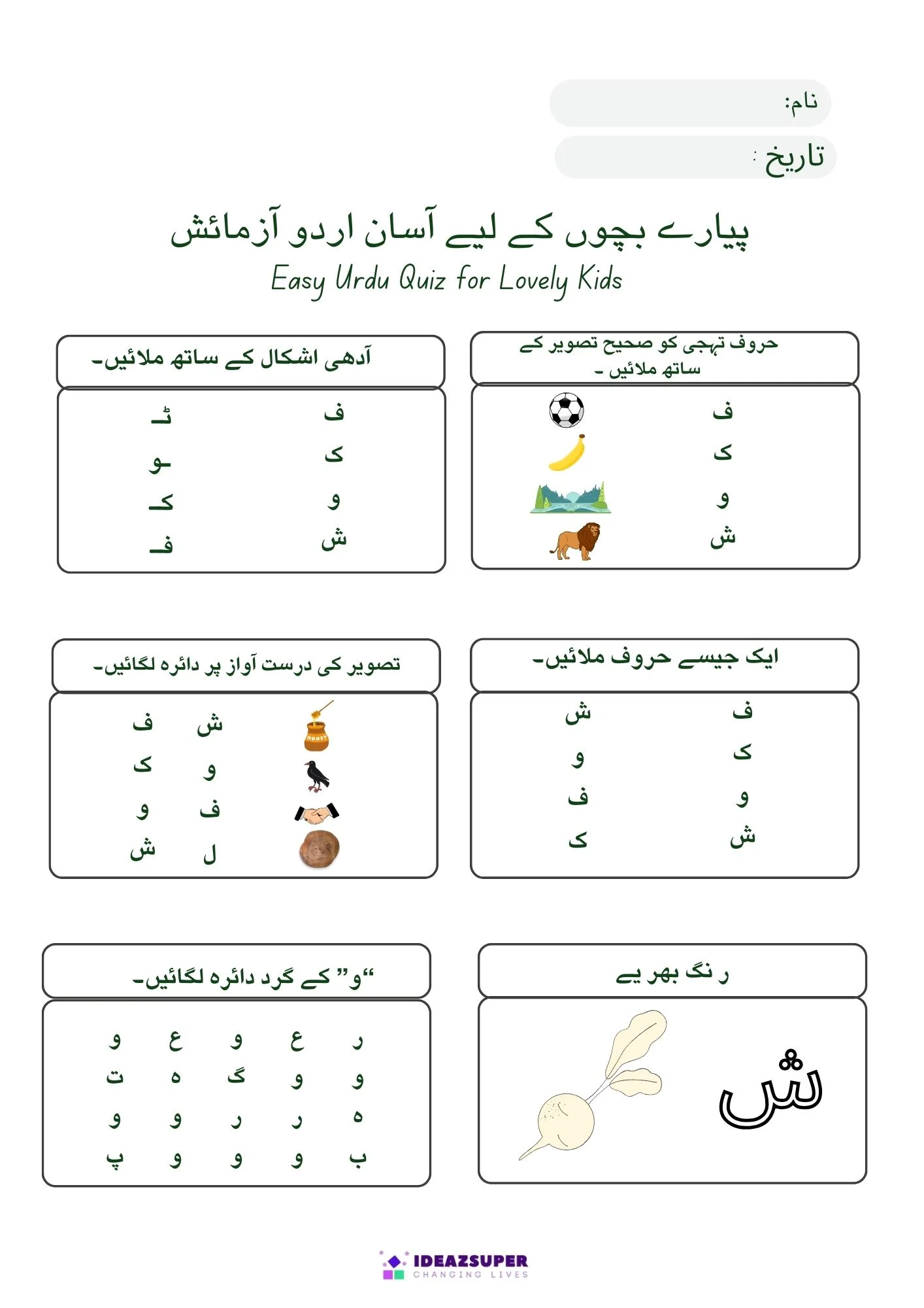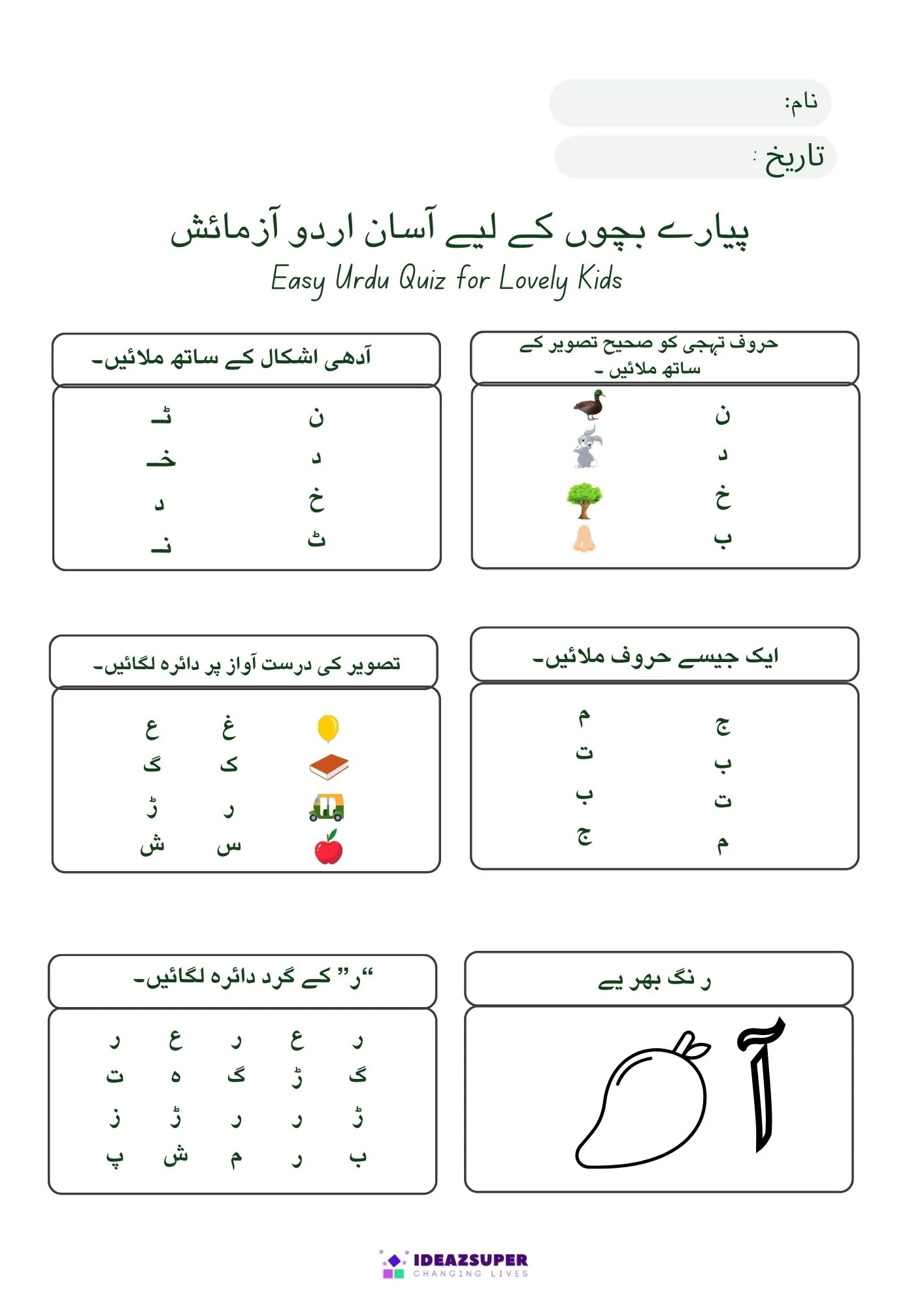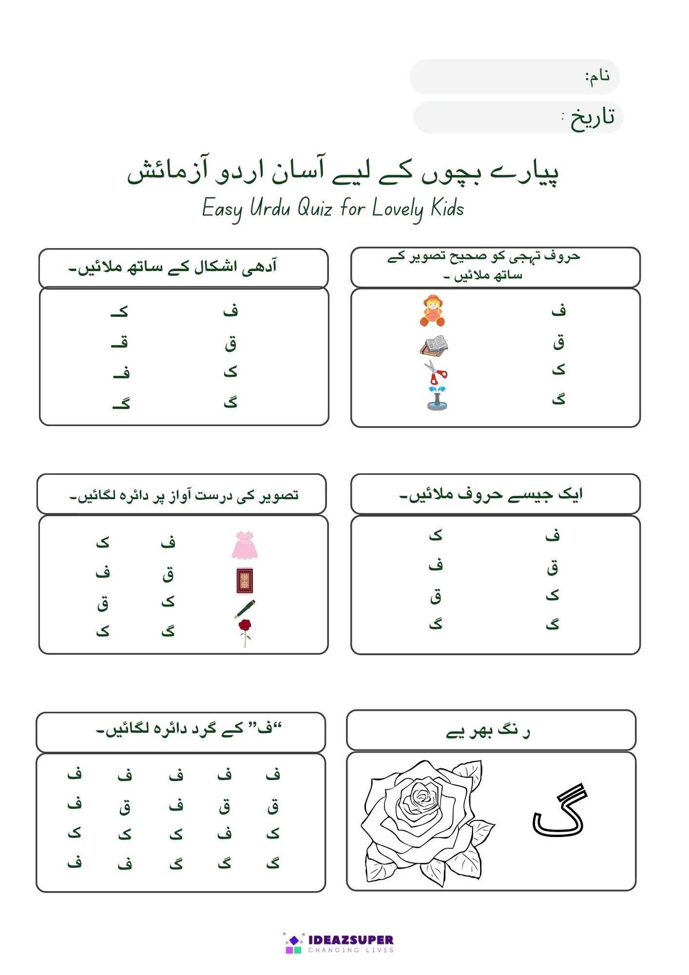 By using these worksheets, your child will gain confidence in Urdu learning while you get a clear picture of their strengths and areas to improve.