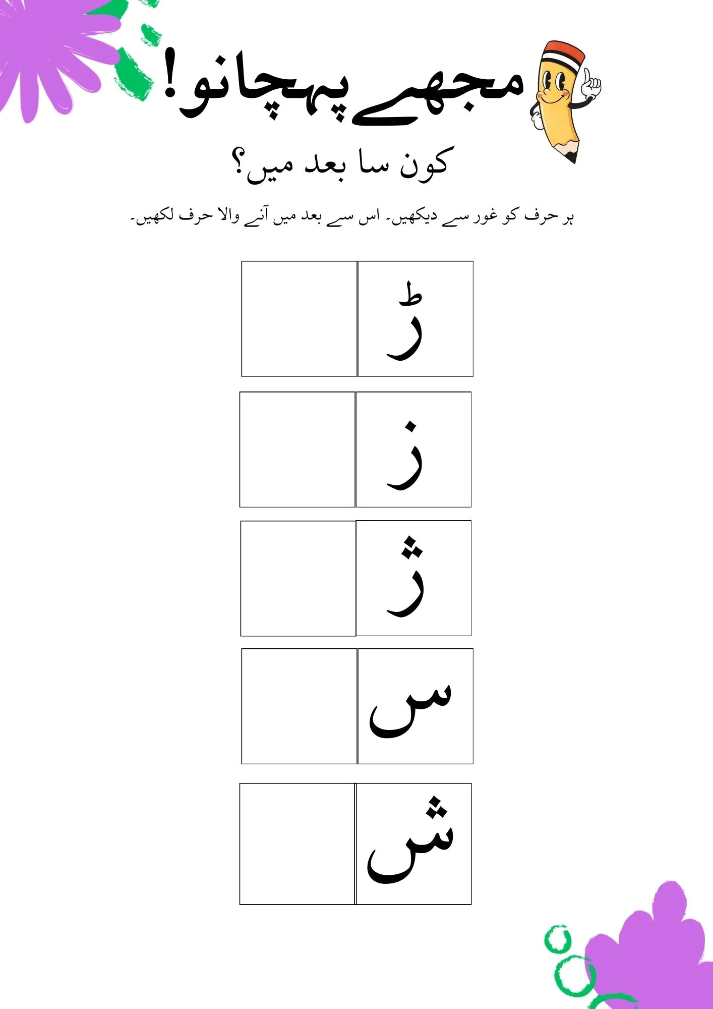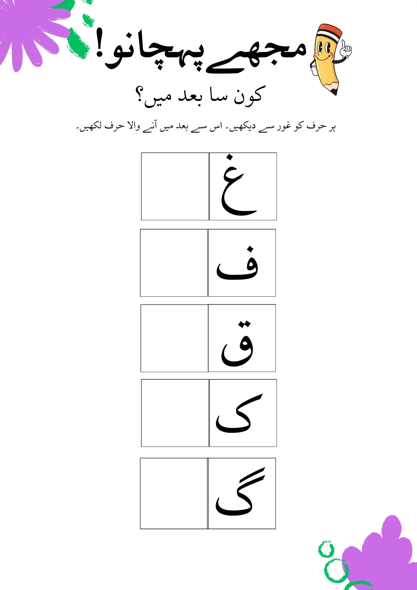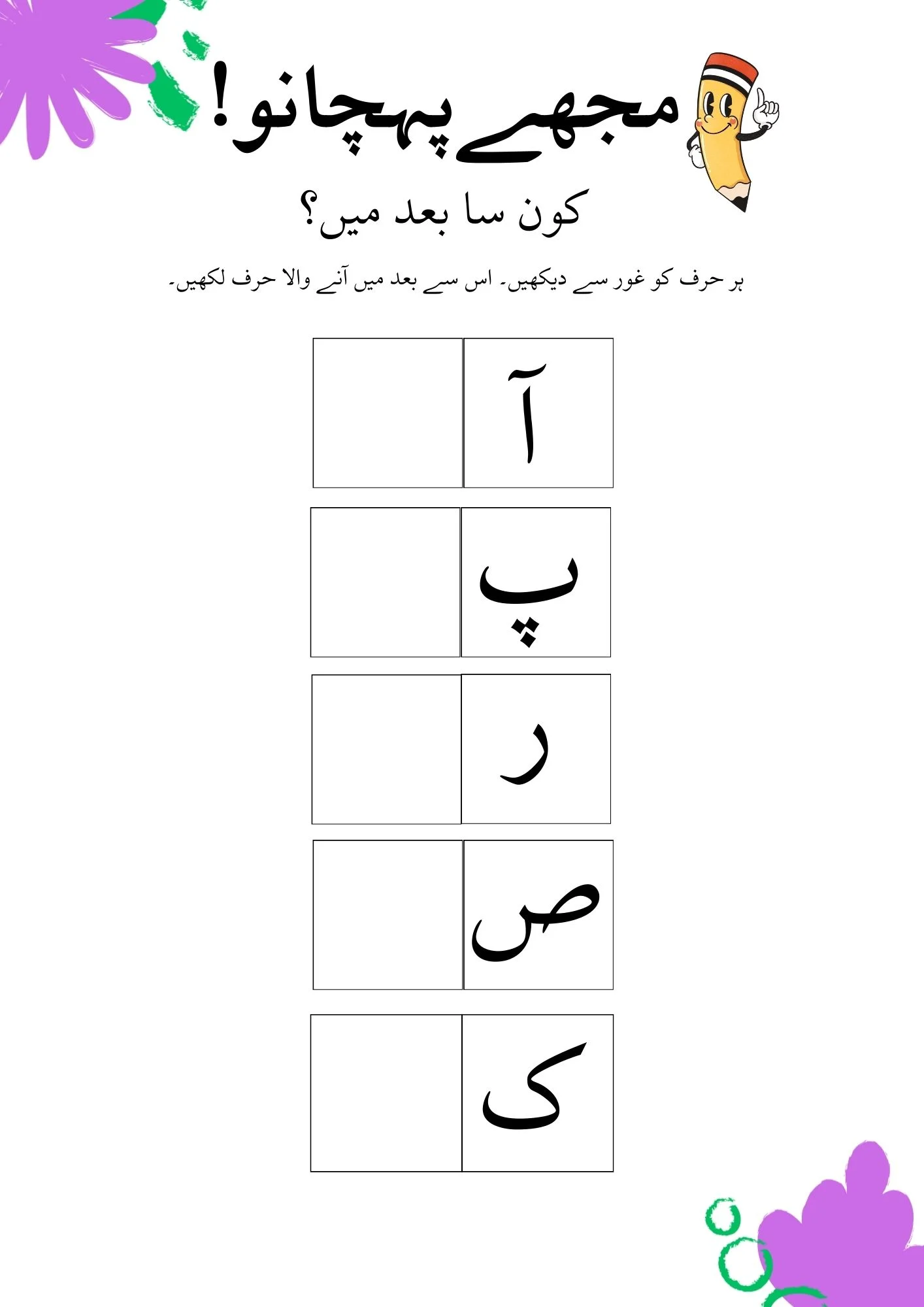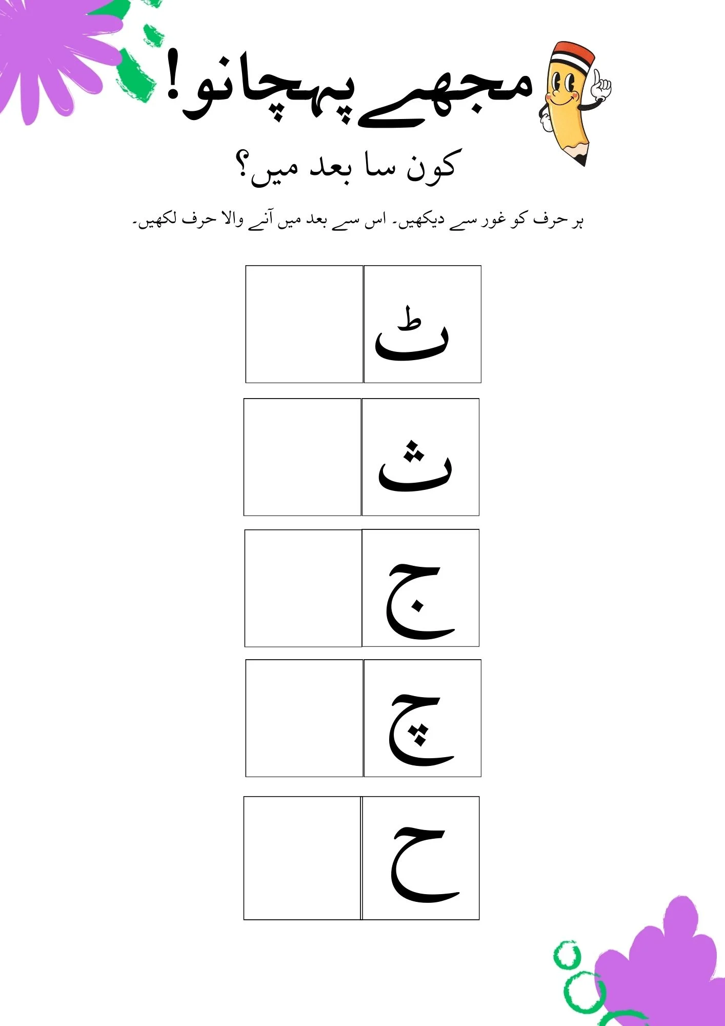 Help your child master Urdu alphabet sequencing with our Before & After Worksheets designed for preschoolers (ages 3–6). These engaging worksheets encourage children to: