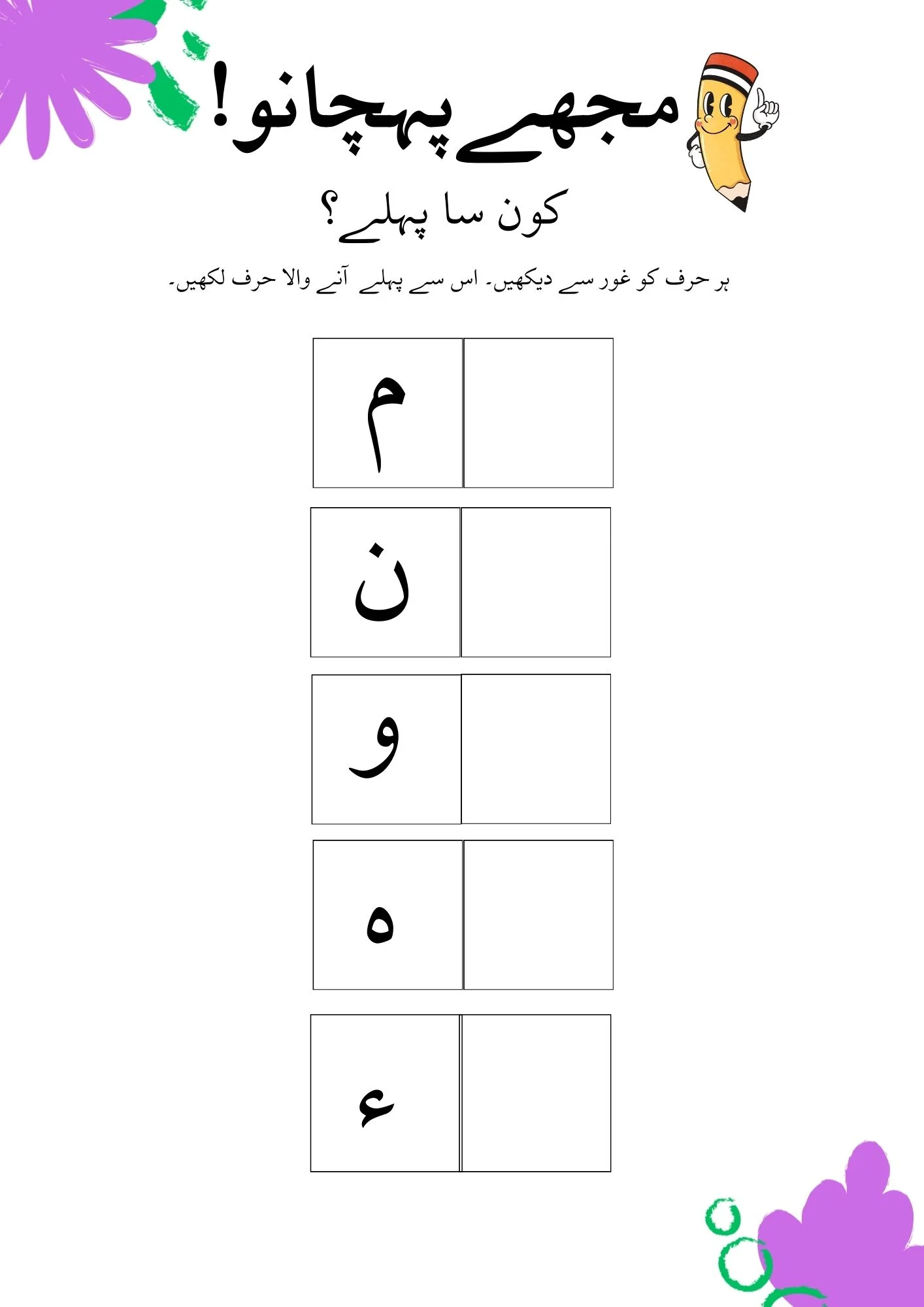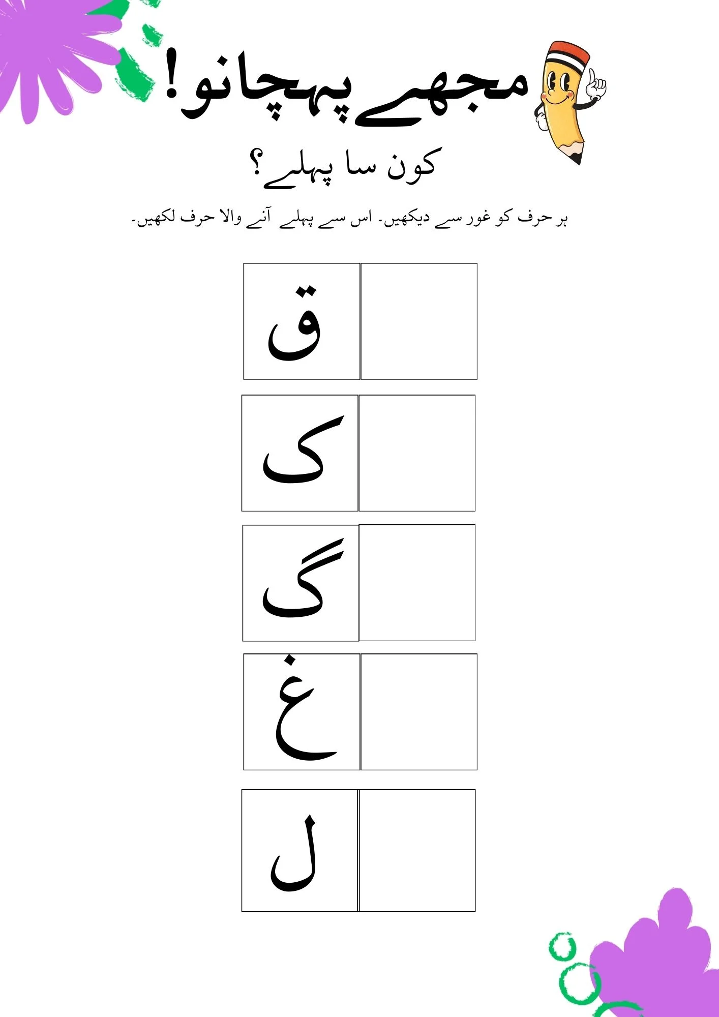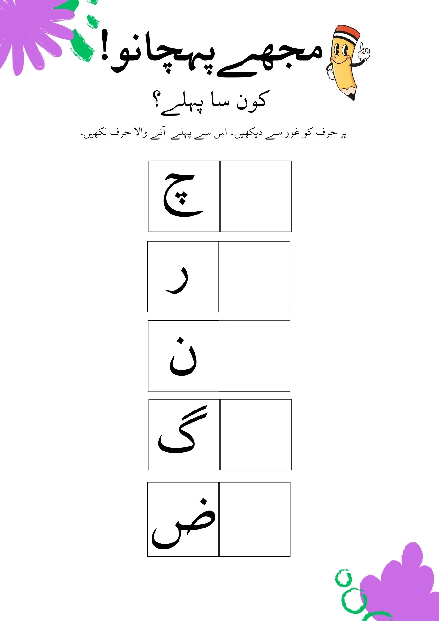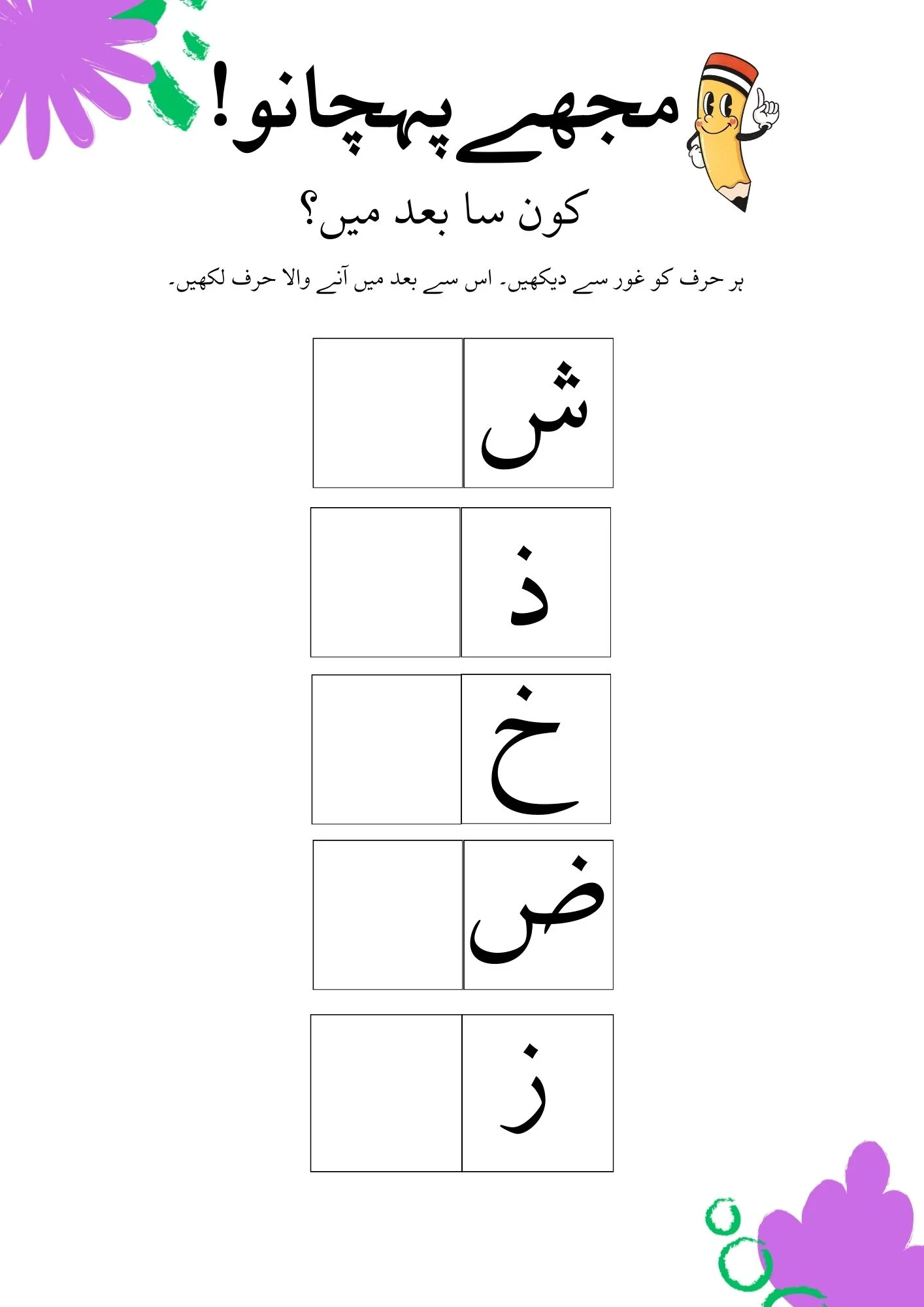 Help your child master Urdu alphabet sequencing with our Before & After Worksheets designed for preschoolers (ages 3–6). These engaging worksheets encourage children to:
