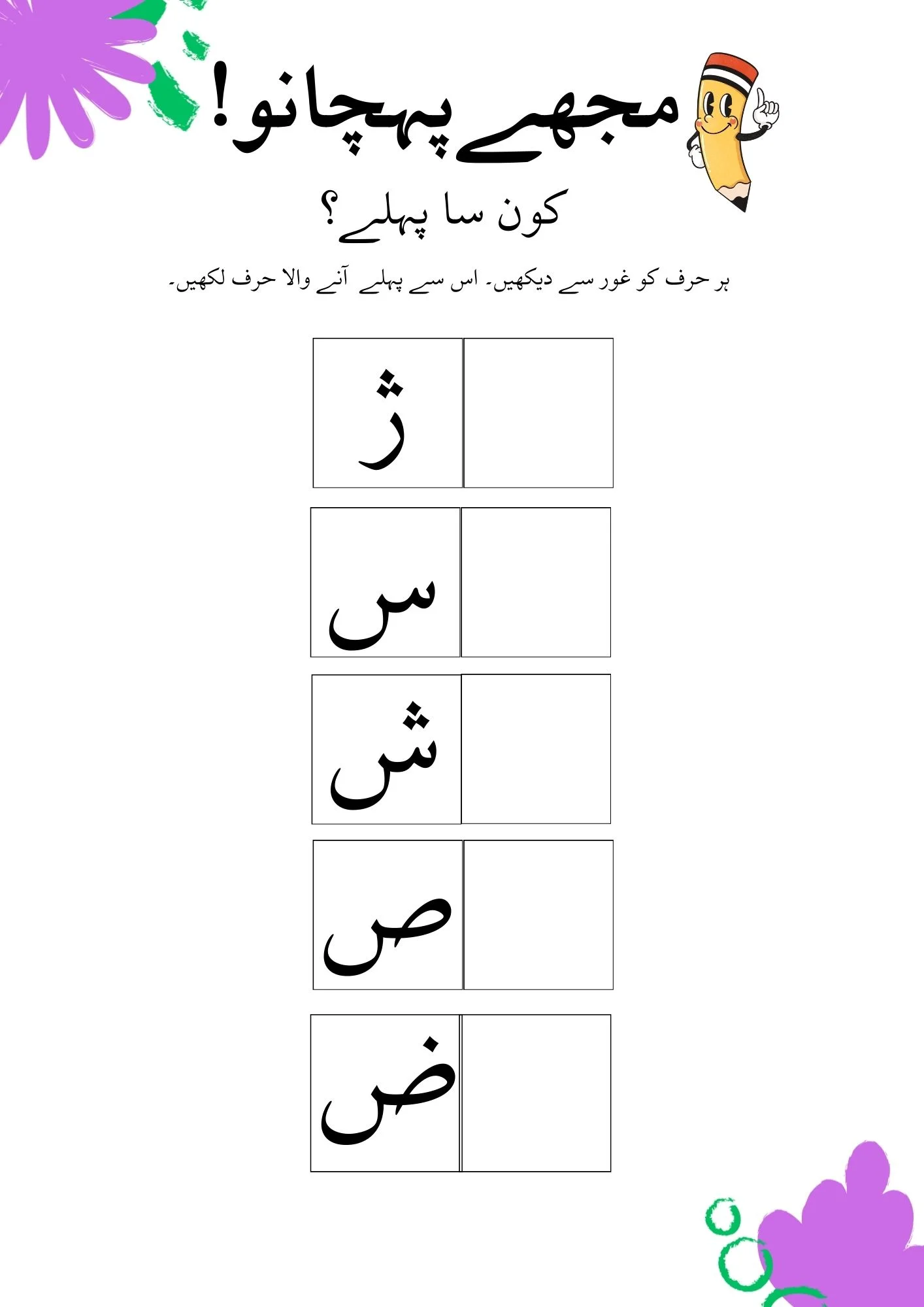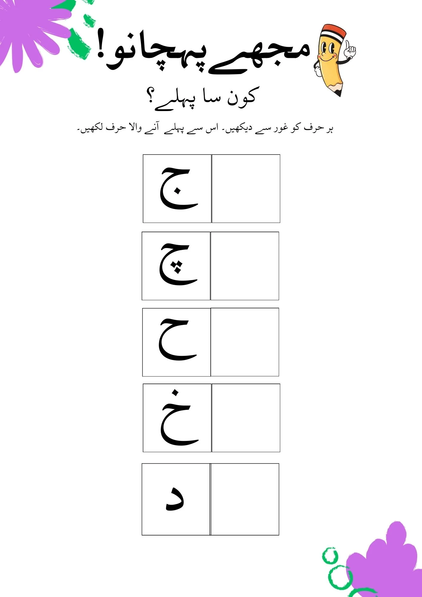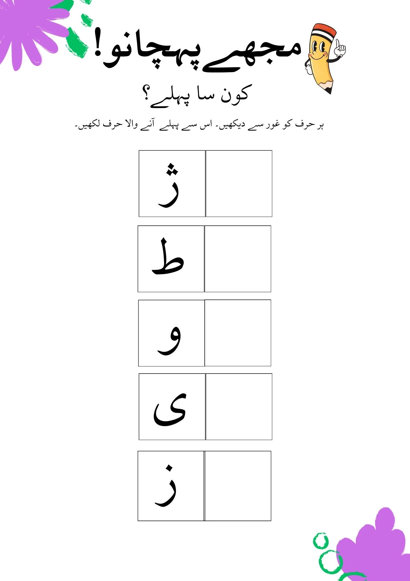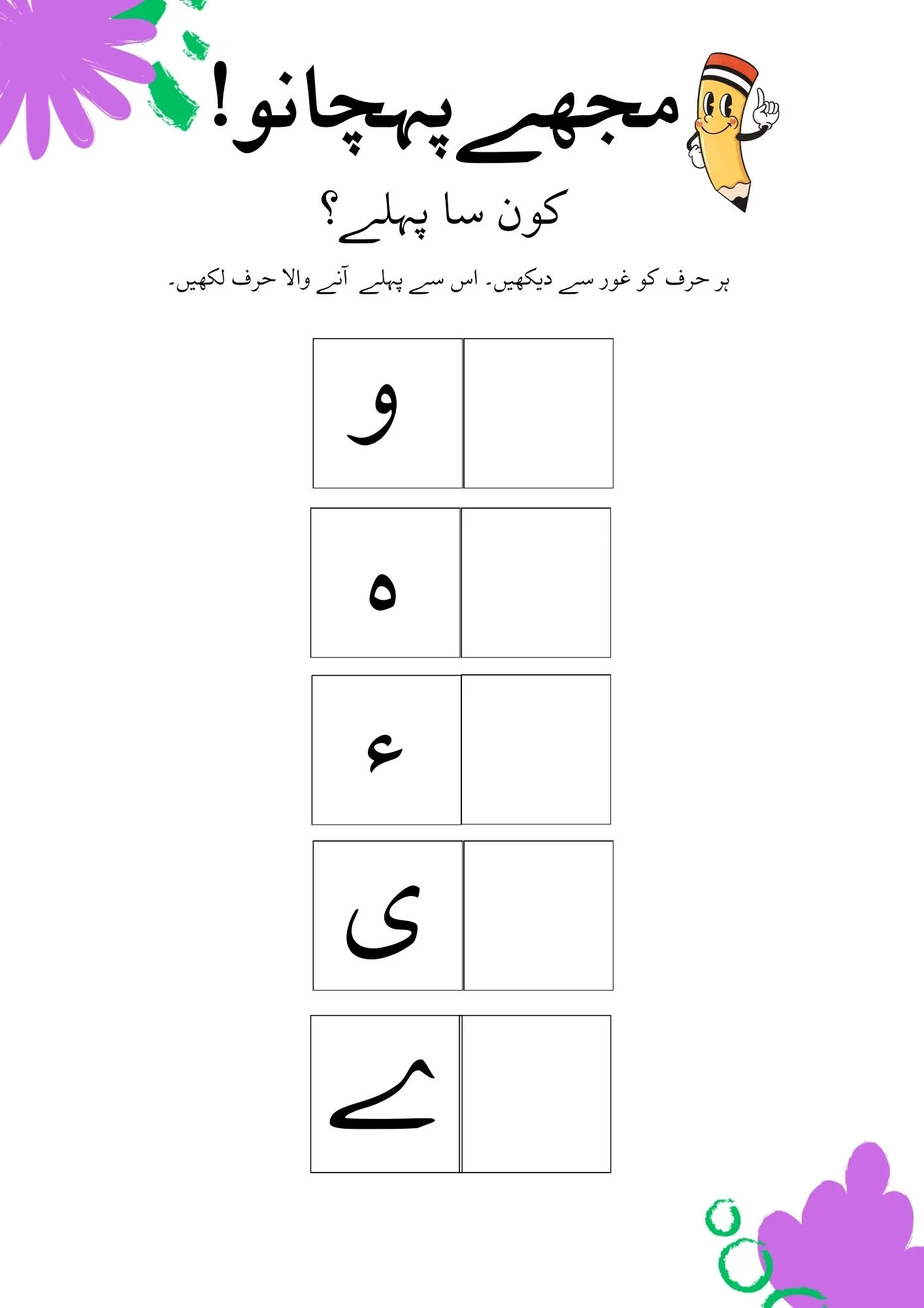 Help your child master Urdu alphabet sequencing with our Before & After Worksheets designed for preschoolers (ages 3–6). These engaging worksheets encourage children to: