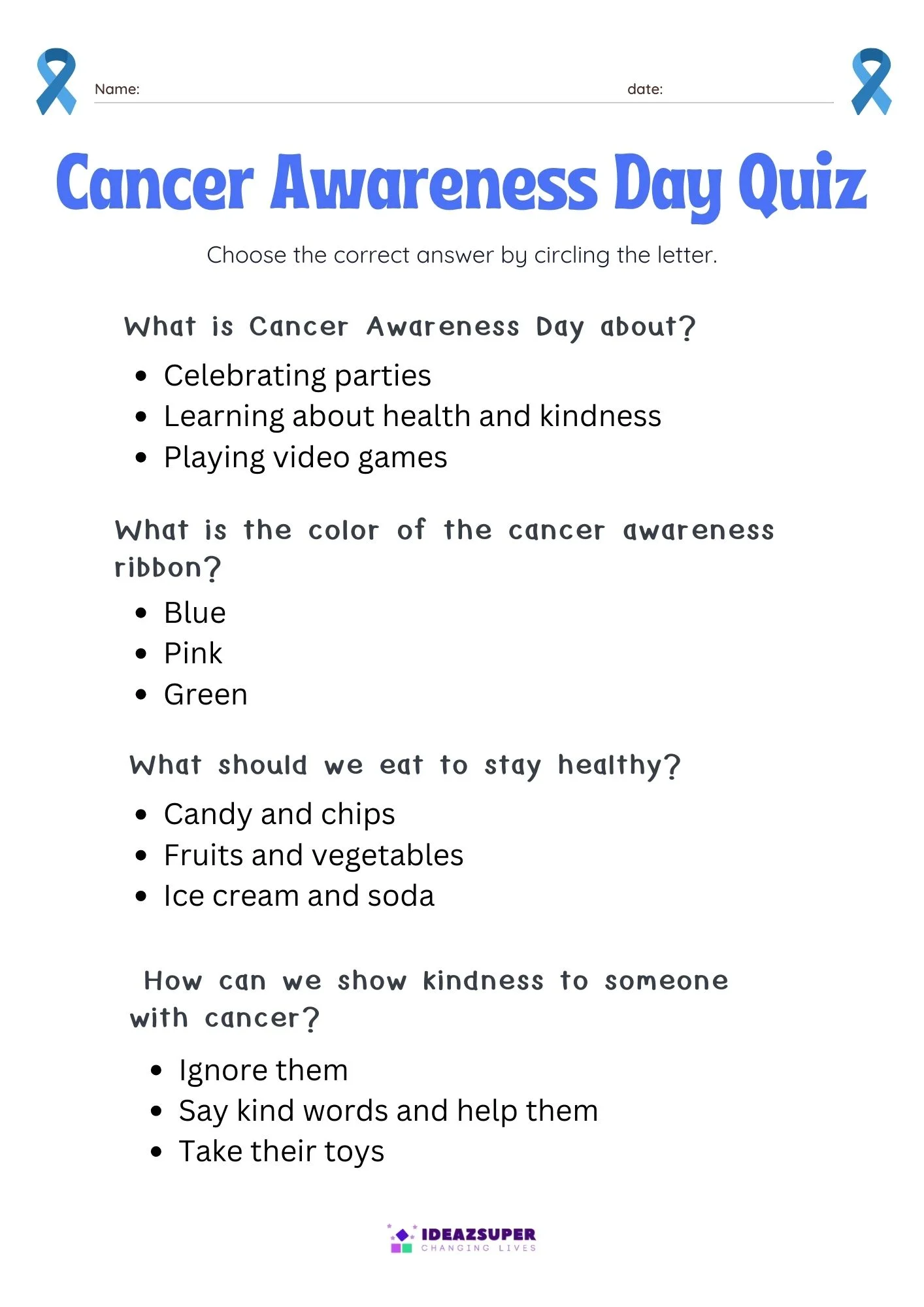World Cancer Day is observed on February 4 to spread awareness about health and care. This topic offers simple, positive, and age-appropriate worksheets for preschool and kindergarten children, focusing on healthy habits, helping others, doctors, and showing kindness in an easy and non-scary way.