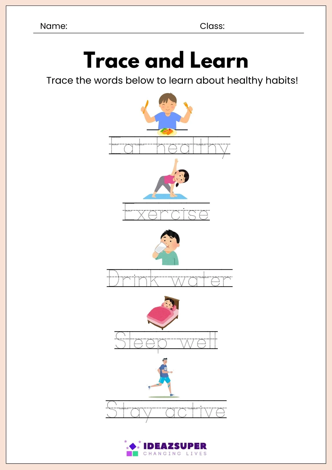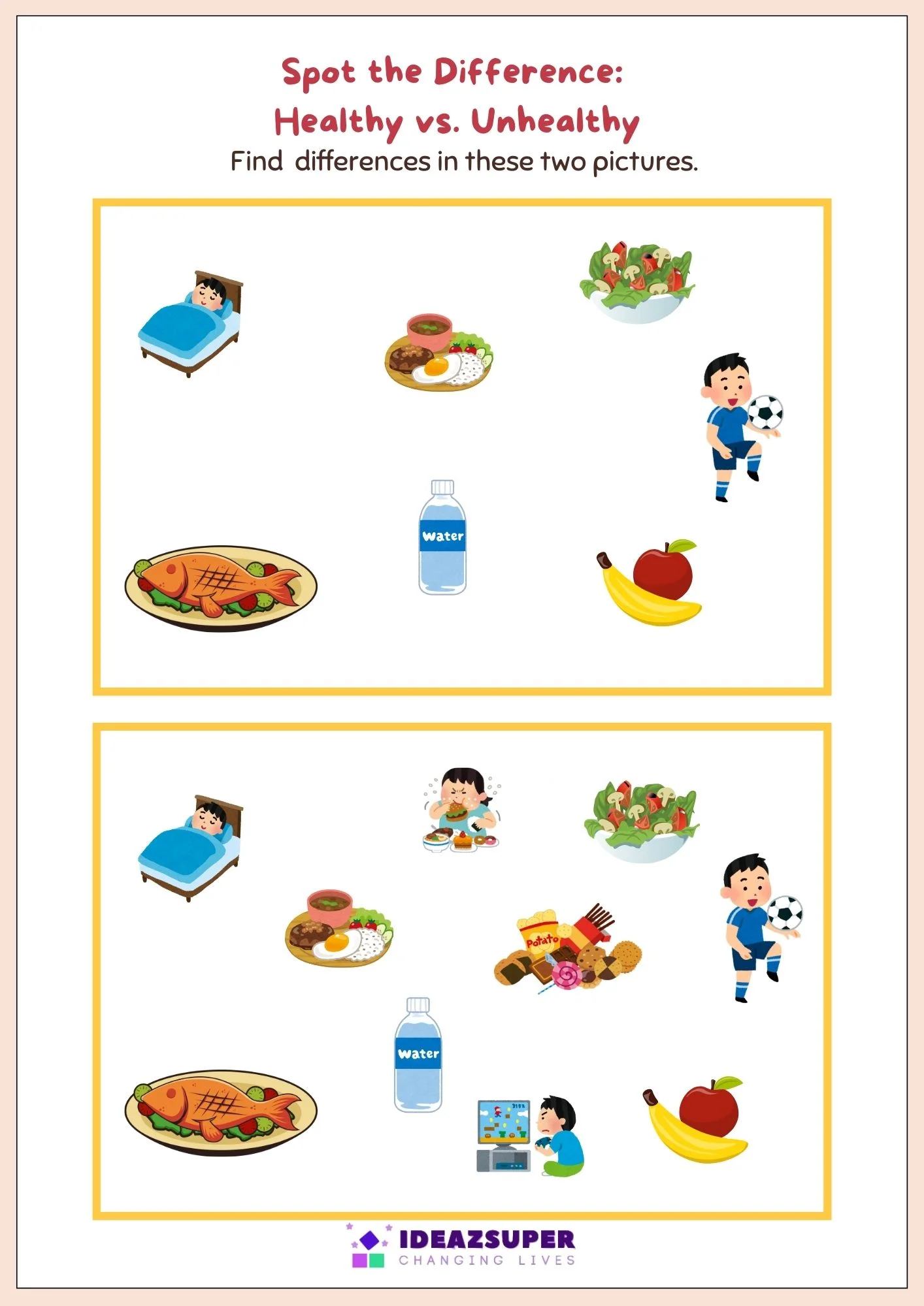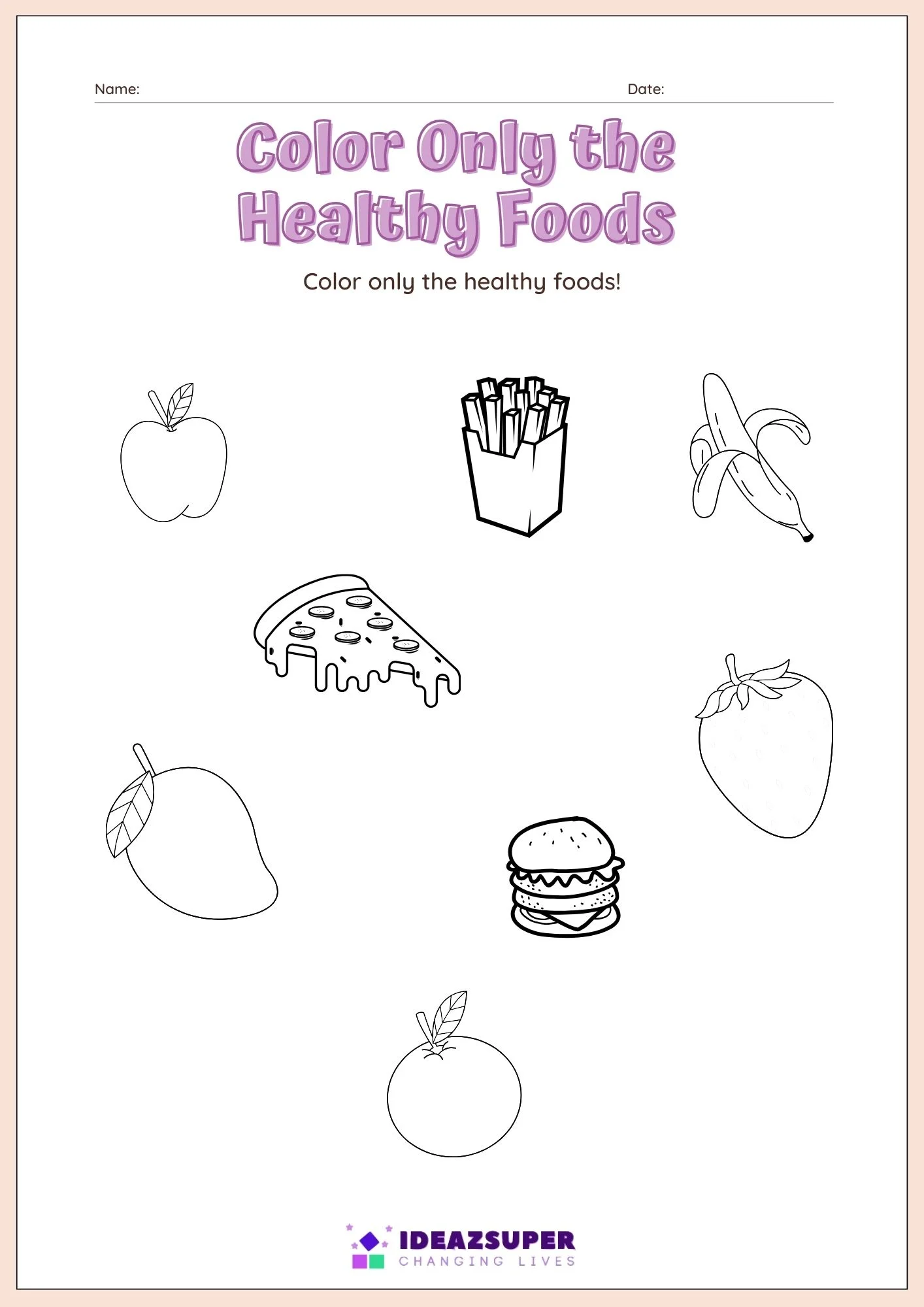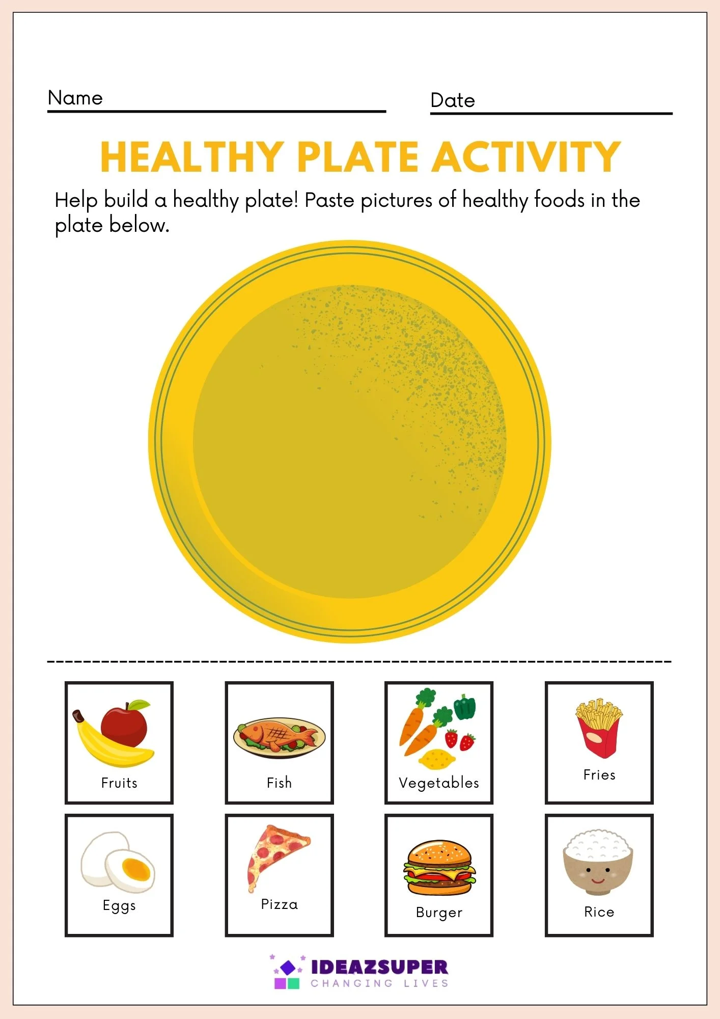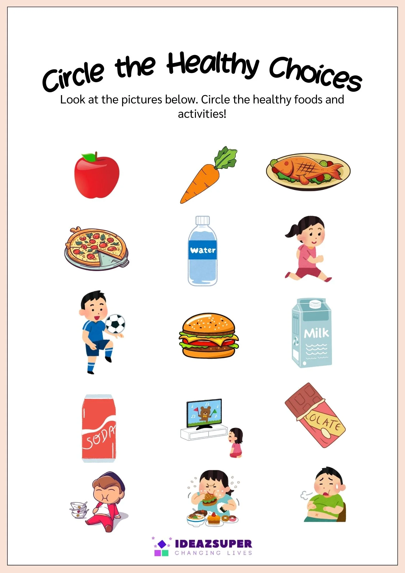 Educational worksheets that teach children about healthy living, balanced food choices, and active lifestyles.